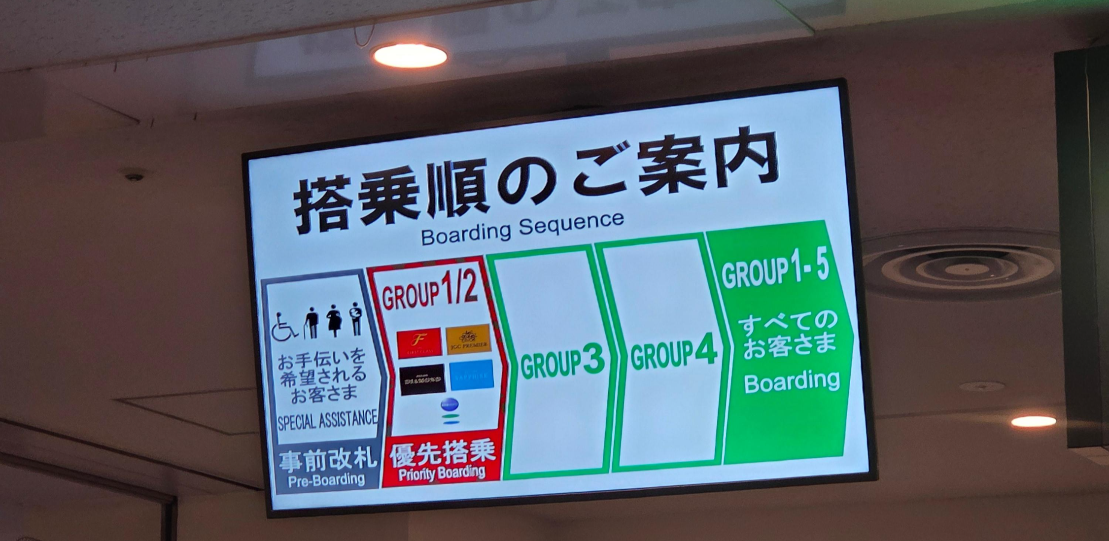 일본항공 국내선 보딩 그룹 (c) jal.co.jp/jp/en/dom/ 일본항공 국내선 탑승 순서는 우선 탑승 → 그룹 1 → 그룹 2 → 그룹 3 → 그룹 4 → 그룹 5 순서로 이루어집니다. 우선탑승의 경우 노약자나 장애인, 어린아이를 동반하는 승객이 포함됩니다. 일본항공 국내선의 우선탑승의 조금 특이한 점이라면 ‘우선’ 탑승이라는 말처럼 보딩이 시작되기 전에 항공기에 탑승을 한다는 점입니다. 대부분의 경우 탑승 시간 5분 전쯤 우선 탑승 승객들의 보딩패스를 스캔하고 문 앞에서 대기시킨 다음, 탑승 시간 1분 전쯤 항공기 문이 열렸다는 무전을 받으면 가장 먼저 탑승시킨 후 그룹 1 보딩이 시작되는 방식입니다. 그룹 1의 경우 일등석 승객, 원월드 에메랄드 등급 회원, JMB 다이아몬드 회원, JCG 프리미어 회원이 해당되고 그룹 2의 경우 원월드 사파이어 등급 회원, JMB 사파이어 회원, JAL 글로벌 클럽 회원이 해당됩니다. 보딩 그룹 3부터는 항공기 기종에 따라 조금씩 차이가 있습니다. 제가 탑승했던 A350-900 항공기를 기준으로 보딩 그룹 3은 창가 좌석 승객, 항공기 뒤쪽 캐빈에 탑승하는 승객, 비상구 좌석 승객이 해당되고 그 외의 승객들은 보딩 그룹 4로 배정됩니다. 일본항공 국내선에서는 클래스 J(좌석상으로는 프리미엄 이코노미지만, 외국 항공사에서 조회하면 비즈니스로 조회되는 일본항공 국내선 전용 클래스)에 우선 탑승을 주지 않으며 이 탑승 그룹 또한 탑승 시간을 최적화할 수 있도록 기종별로 다른 탑승 그룹을 적용하고 있습니다.