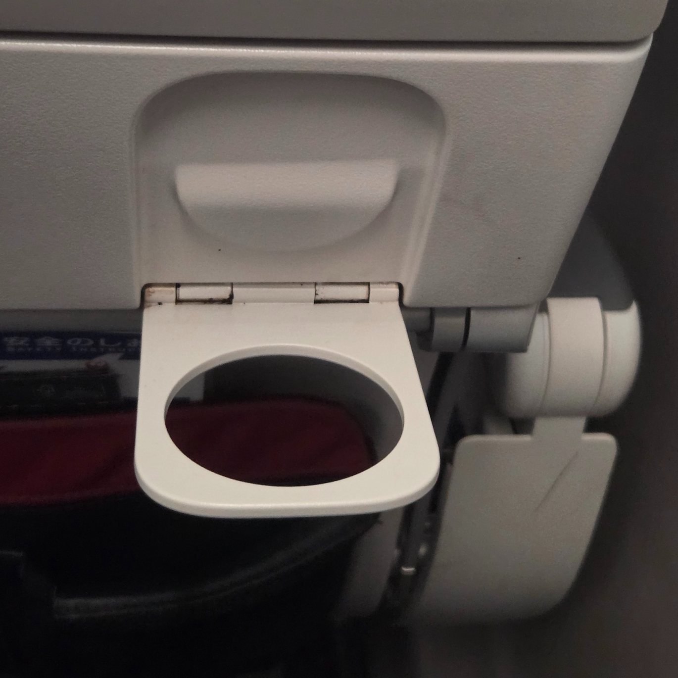 일본항공 A350-900 이코노미 클래스 좌석 테이블 수납 주머니 위로는 2번 접히는 테이블이 있습니다. 모두 접힌 상태에서도 사용할 수 있는 컵 홀더가 있고, 한번 접으면 손바닥 하나 정도의 깊이를 가지는 테이블이. 두 번 모두 펼치면 노트북을 충분히 놓을 수 있을 정도의 넓이를 가진 테이블이 나옵니다. 테이블은 위치를 앞뒤로 조정할 수 있어 테이블을 당겨 몸과 가까운 위치로 조정할 수도 있고요.