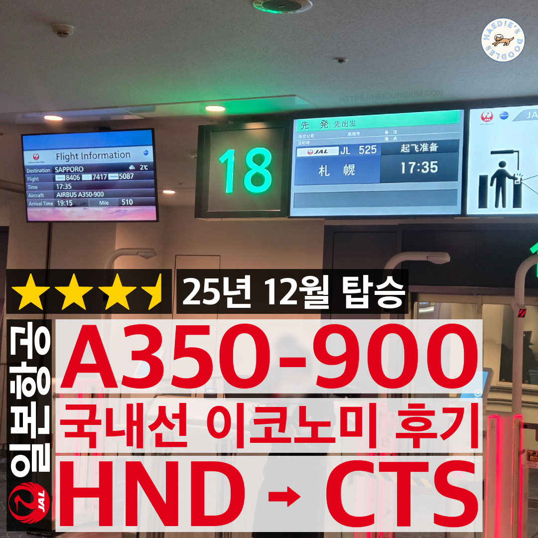 일본항공 A350-900 일본 단거리 국내선 이코노미 후기 (25년 12월 탑승, 도쿄 하네다 국제공항 → 삿포로 신치토세 국제공항, JL525) 리뷰 요약 & 목차