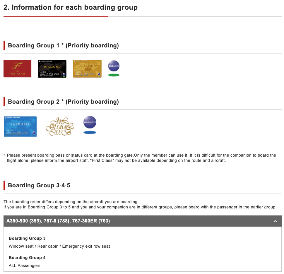 일본항공 국내선 프리 보딩 대상 승객 (c) jal.co.jp/jp/en/dom/