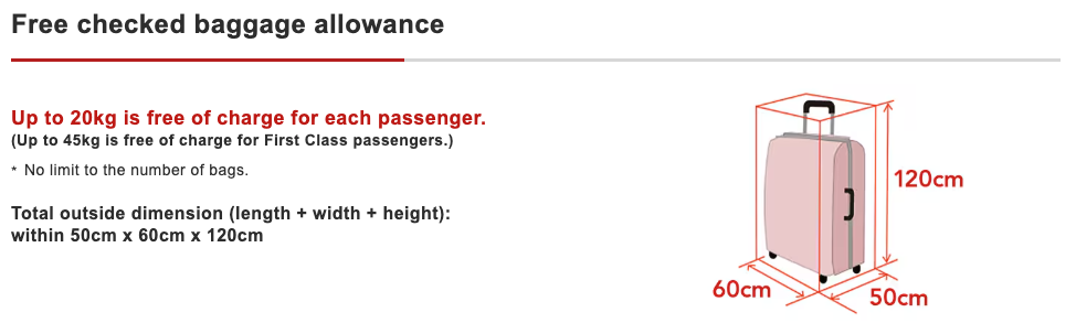 일본항공 국내선 위탁 수하물 정보 (c) jal.co.jp/jp/en/dom/ 일본항공 국내선의 경우 휴대 수하물로 1개의 기내 캐리어와 1개의 작은 가방을 제공합니다. 두 가방의 무게는 합쳐서 10kg를 넘어서는 안되고, 이는 탑승 클래스와 상관없이 동일합니다. 주의할 점으로는 국내선에서 작은 항공기도 운영하는 일본항공답게 휴대 수하물의 크기 규정이 탑승 항공기에 따라 다릅니다. 하지만 도쿄 하네다 - 삿포로 노선의 경우 전부 중대형 항공기로 운영하기 때문에 우리가 일반적으로 생각하는 크기의 기내용 캐리어 휴대가 가능합니다. 일본 국내선 위탁 수하물은 개수가 아니라 무게단위로 운영됩니다. 일등석 승객의 경우 총 45kg까지 위탁이 가능하고, 나머지 승객의 경우 20kg까지 위탁이 가능합니다. 원월드 사파이어 등급 회원의 경우 기본 20kg에 더해 추가로 15kg가 제공되어 이코노미 클래스의 경우 총 35kg의 수하물을 무료로 위탁할 수 있고, 원월드 에메랄드 회원의 경우 추가로 20kg가 더 제공되어 이코노미 클래스의 경우 총 40kg의 수하물을 위탁할 수 있습니다. 자세한 일본항공 국내선 휴대 수하물 규정은 여기, 위탁 수하물 규정은 여기, 원월드 등급 혜택은 여기서 확인하실 수 있습니다.