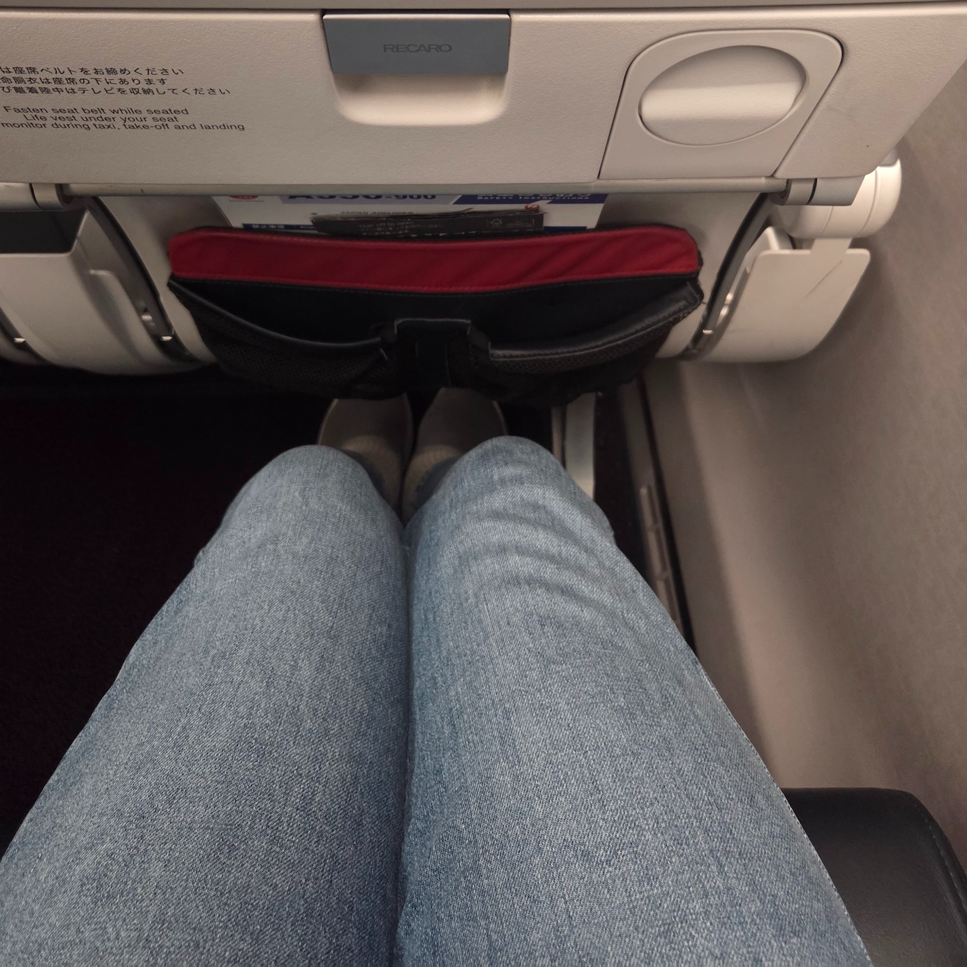 일본항공의 국내선 전용 A350-900의 이코노미 클래스는 3-3-3 배열로 구성되어 있습니다. 따라서 시트 넓이는 18인치로, 일본항공의 국제선 전용 A350-1000과 동일합니다. 하지만 A350-900의 시트 간 간격은 31인치로 A350-1000보다 2인치 이상 좁습니다. 하지만 일본항공의 국내선 전용 A350-900 항공기는 최대 3시간 이내의 국내선에만 투입되기 때문에 딱히 불편하다고 느껴지지는 않는 정도였습니다. 31인치의 좌석 간격은 일본이나 한국의 풀 서비스 항공사들 사이에서나 좁은 간격이지, 실제로 세계의 수많은 항공사들의 장거리 항공기 이코노미 클래스 좌석 간격이 31인치 정도이기도 하고요.
