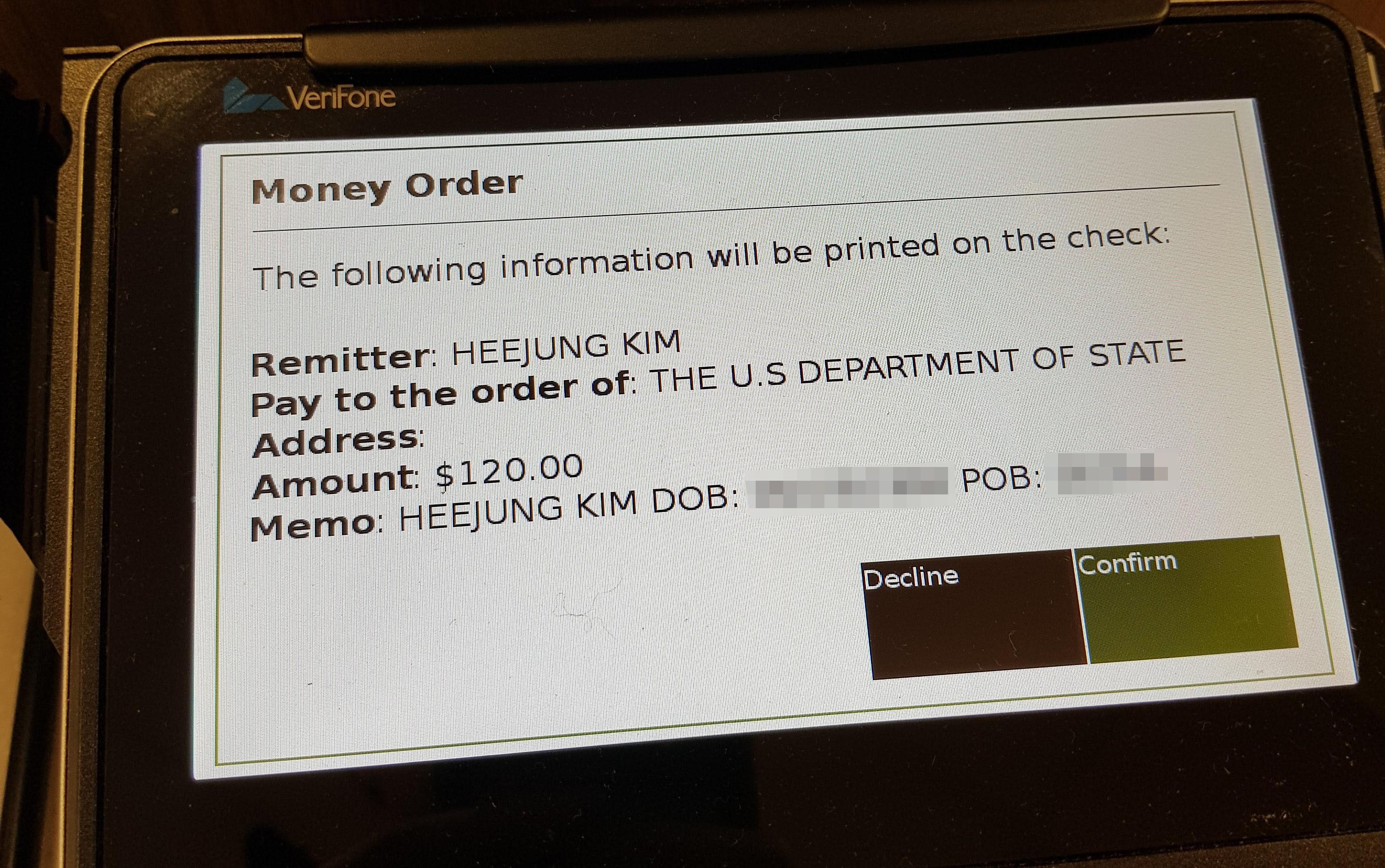 Money Order에 들어가는 정보 (c) Heejungkim.com -