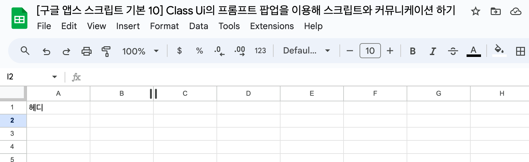 [구글 앱스 스크립트 기본 10] Class Ui의 프롬프트 팝업을 이용해 스크립트와 커뮤니케이션 하기 글의 순서