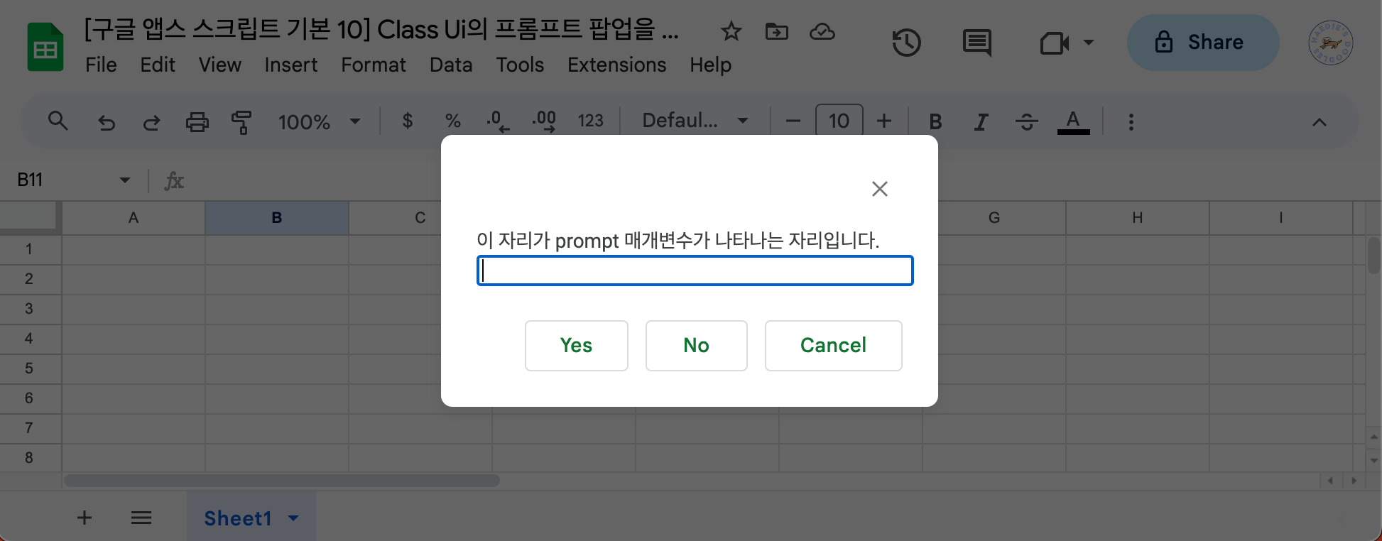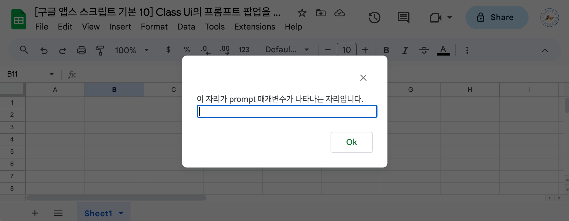 - 구글 앱 스크립트 클래스 Ui의 prompt 메서드