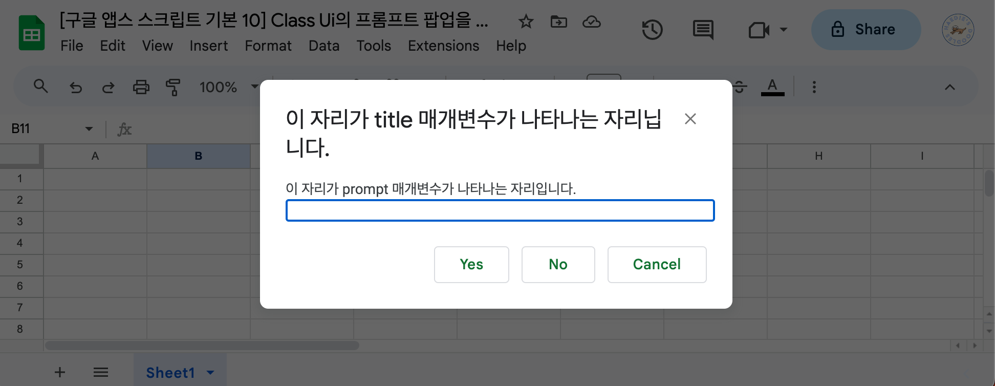 - 구글 앱 스크립트 클래스 Ui의 prompt 메서드