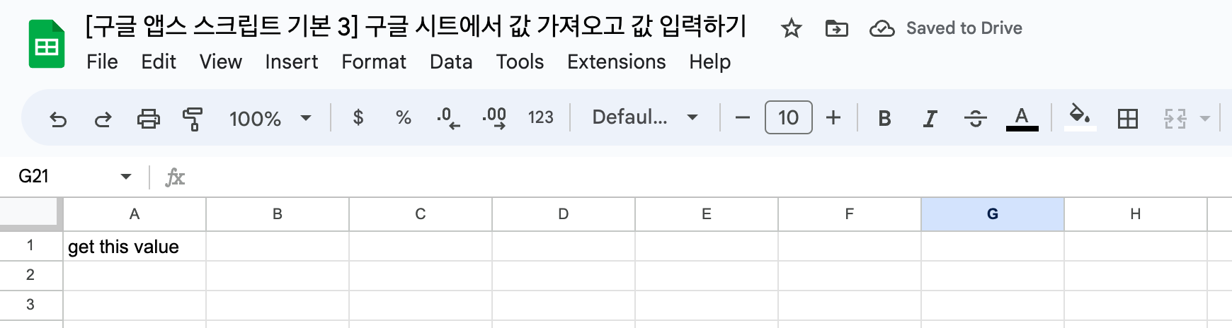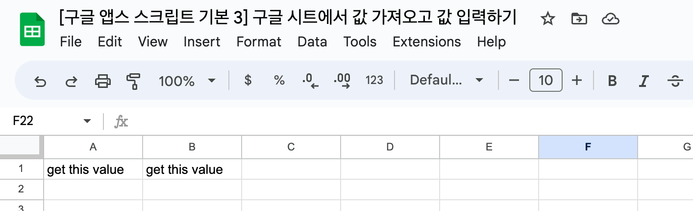 - 한 개의 셀의 값을 구글 스크립트로 가져오기