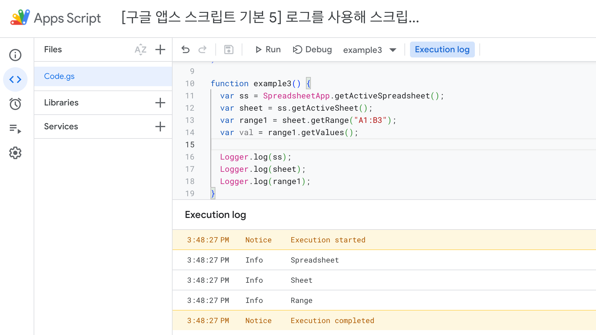 • [구글 앱스 스크립트 기본 5] 로그를 사용해 스크립트의 진행상황 파악하기