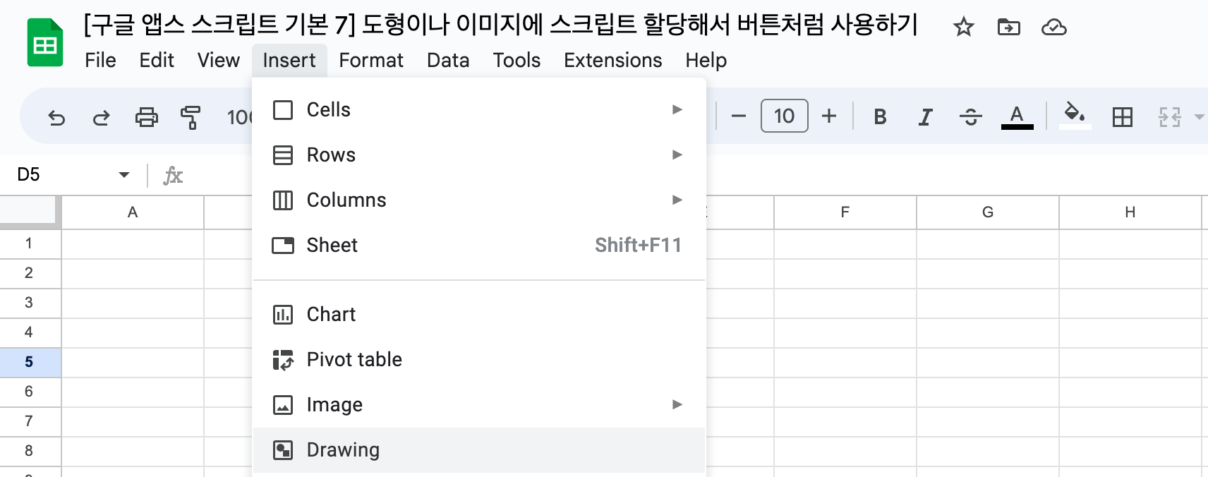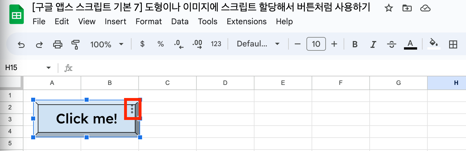 [구글 앱스 스크립트 기본 7] 도형이나 이미지에 스크립트 할당해서 버튼처럼 사용하기 글의 순서