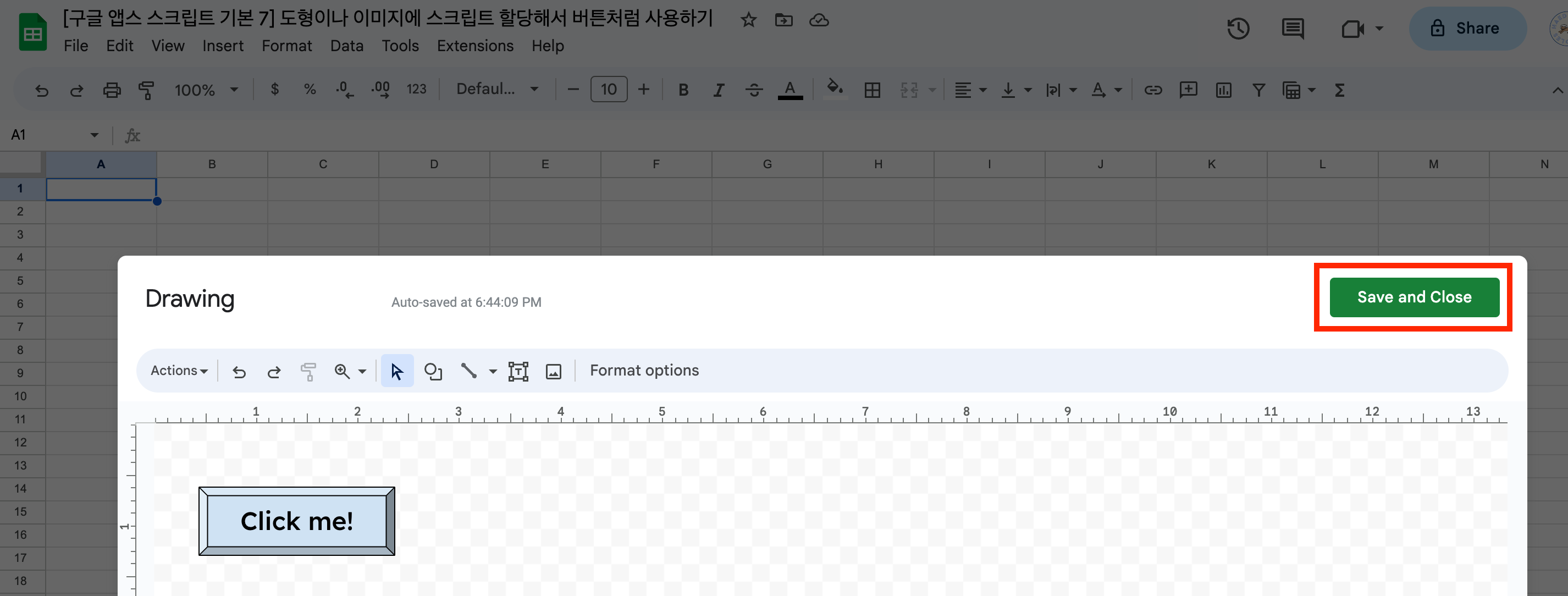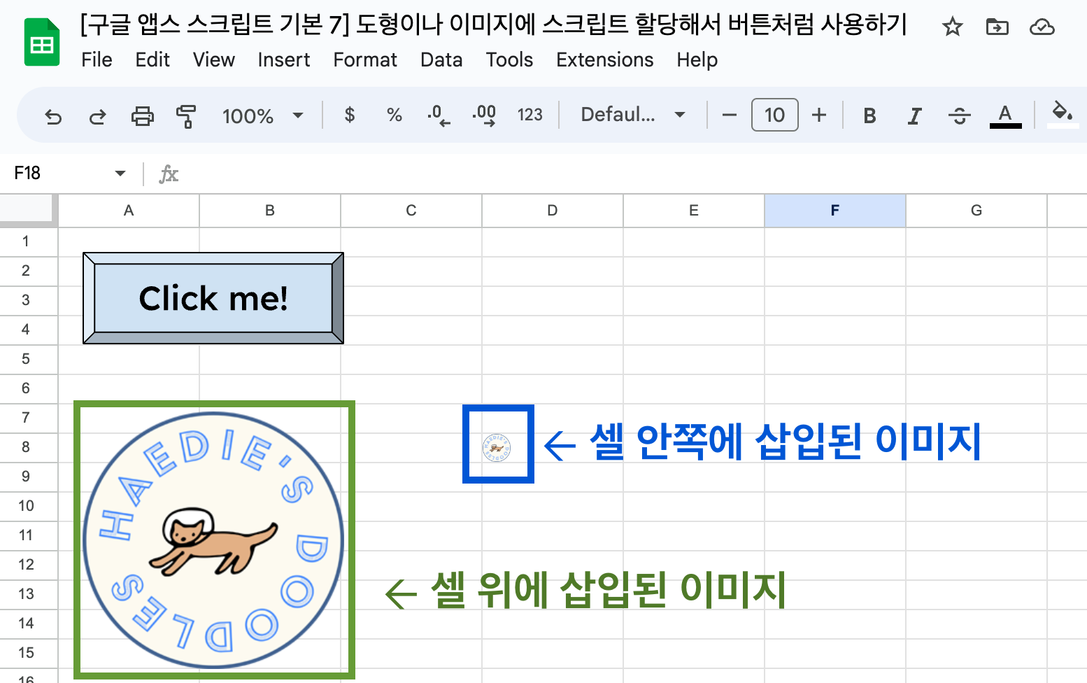 • [구글 앱스 스크립트 기본 7] 도형이나 이미지에 스크립트 할당해서 버튼처럼 사용하기