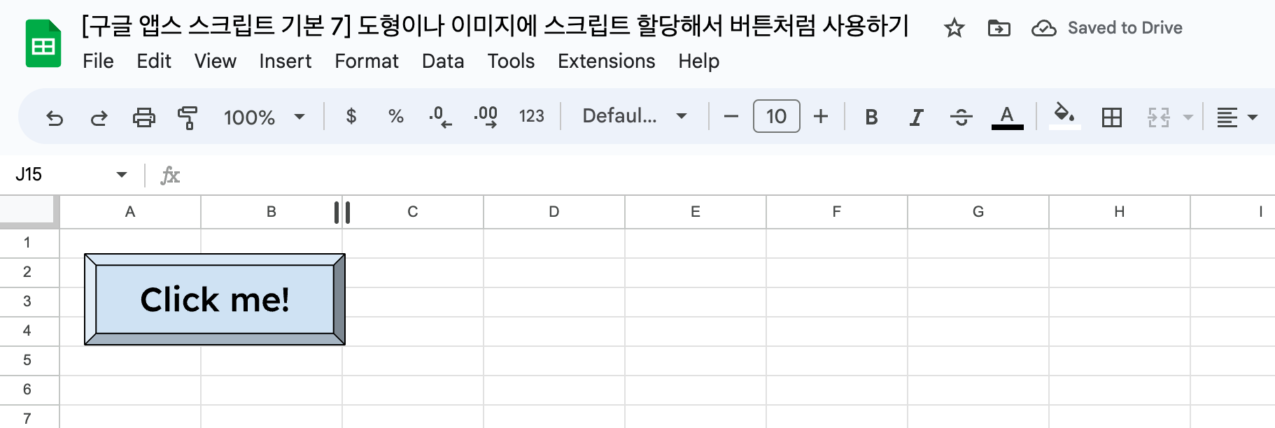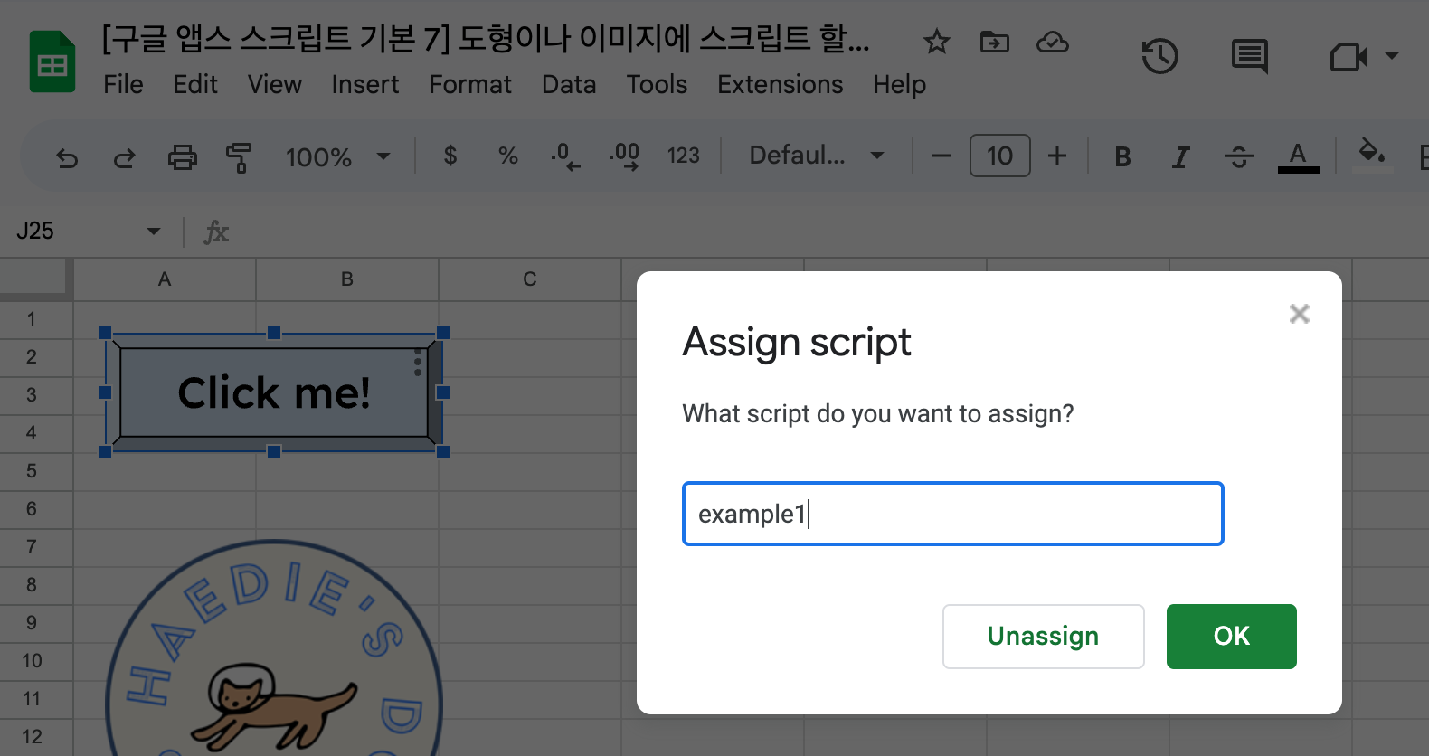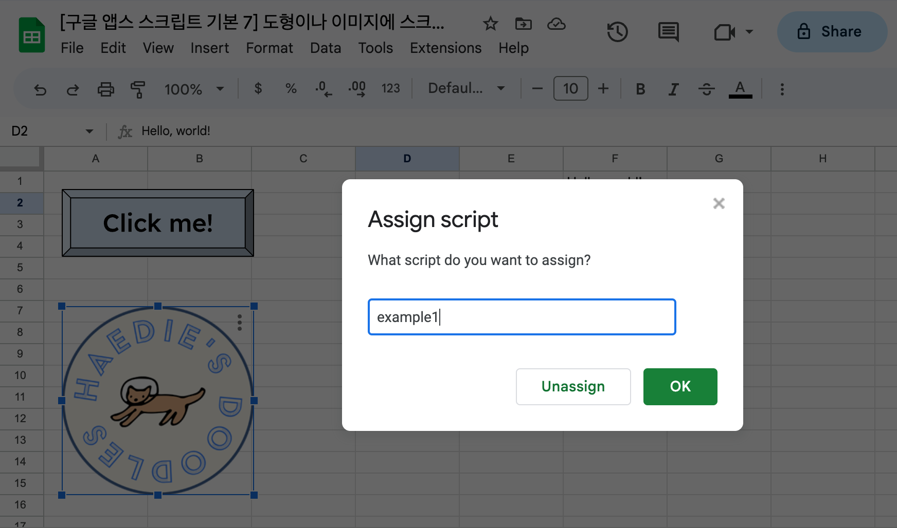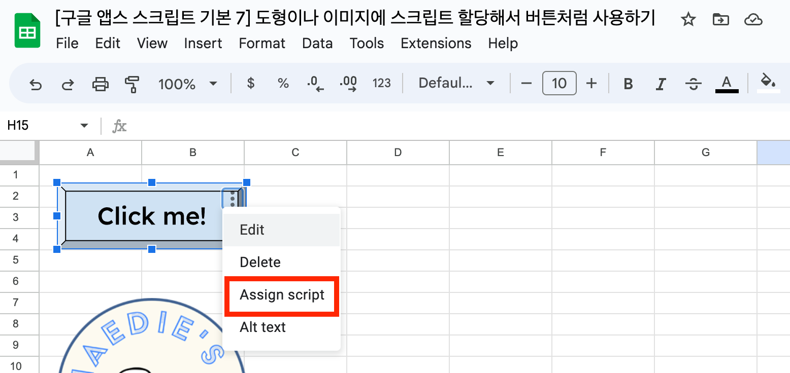 [구글 앱스 스크립트 기본 7] 도형이나 이미지에 스크립트 할당해서 버튼처럼 사용하기
