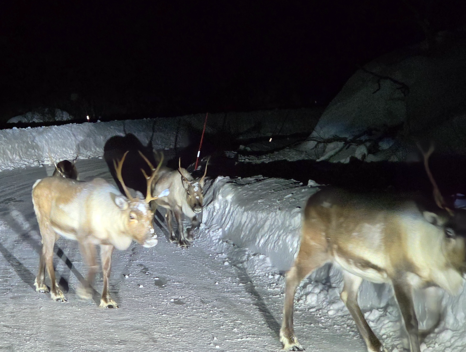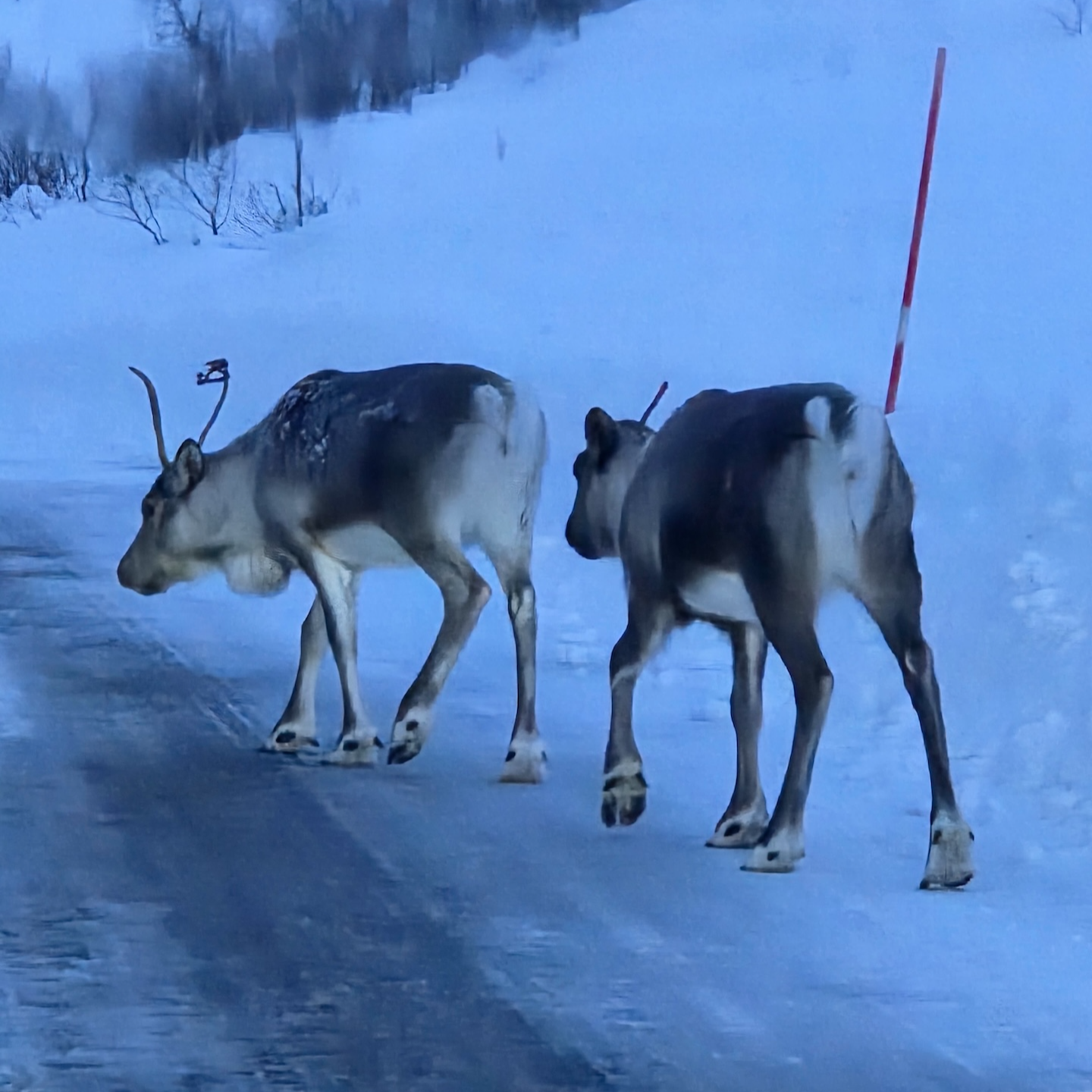 트롬쇠에서 마주한 순록 - 교외에는 야생동물을 마주치는 경우도 있습니다. 특히 도로를 걸어가는 순록과 마주치는 경우가 꽤 있는데요, 따라서 언제든지 야생동물을 마주칠 수 있다는 생각을 가지고 조심해서 운전하셔야 합니다.