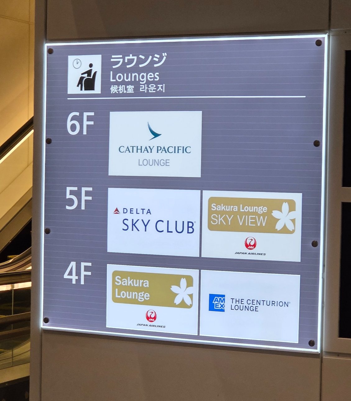 대한항공 KE2106편 프레스티지석 승객이 이용하는 도쿄 하네다 국제공항 JAL 사쿠라 라운지 제가 이용한 사쿠라 라운지는 114번 게이트 부근에 위치해 있습니다. 4층 사쿠라 라운지와 5층 사쿠라 라운지 스카이뷰 중 선택할 수 있는데, 당시 4층이 만석이라 5층으로 안내를 받았습니다. 5층 스카이뷰 라운지는 좌석 여유는 있었으나 뷔페 코너의 혼잡도가 상당했고, 비어 있는 메뉴들이 제때 채워지지 않는 등 운영 면에서는 다소 아쉬움이 보였습니다. 도쿄 하네다 공항 3터미널의 사쿠라 라운지에 대한 리뷰는 추후 다른 글에서 자세히 다룰 예정입니다.