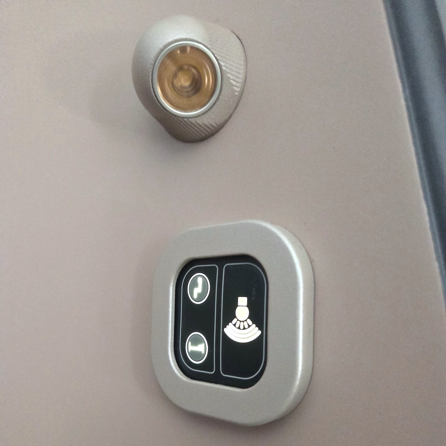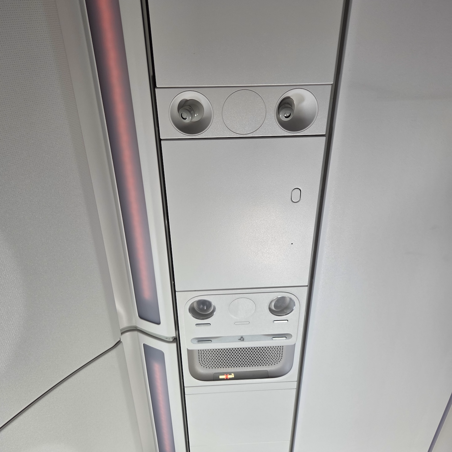 대한항공 A321neo 프레스티지 클래스 7A 좌석 독서등과 개인 에어벤트, 후크 오버헤드 빈에는 개별 독서등 외에 개인용 에어벤트가 장착되어 있습니다. 기내 온도를 다소 높게 유지하는 대한항공의 특성상, 에어벤트를 통해 풍량을 조절할 수 있다는 점은 분명한 메리트입니다. 또한 가벼운 물건을 걸어놓을 수 있는 후크는 디스플레이 왼쪽에 위치해 있었습니다. 평소에는 수납되어서 보관되다 사용할 때 눌러서 꺼내는 방식이었습니다.