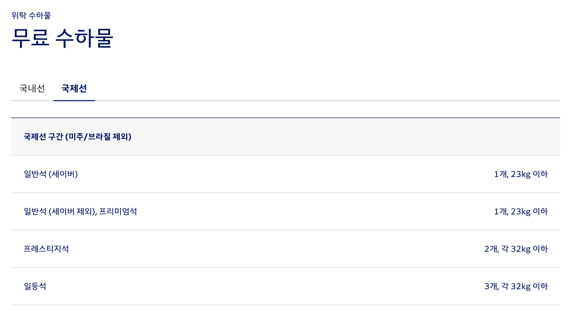 대한항공 위탁수하물 규정 (c) kr.koreanair.com 대한항공의 일본노선 무료 위탁 수하물로 이코노미 클래스(일반석)와 프리미엄 이코노미 클래스(프리미엄석)는 23kg 수하물 1개, 비즈니스 클래스(프레스티지석)은 32kg 수하물 2개를 허용합니다. 모닝캄 회원과 모닝캄 프리미엄 회원, 스카이팀 엘리트 회원, 스카이팀 엘리트 플러스 회원의 경우 이코노미 클래스 탑승시에는 23kg 수하물 1개를 추가로 제공하고, 비즈니스 클래스 탑승시에는 32kg 수하물 1개를 추가로 허용합니다. 밀리언 마일러 클럽 회원의 경우 탑승 클래스에 상관없이 32kg 수하물 1개를 추가로 허용합니다. 대한항공의 자세한 휴대 수하물 규정은 여기, 자세한 위탁 수하물 규정은 여기서 확인하실 수 있습니다.