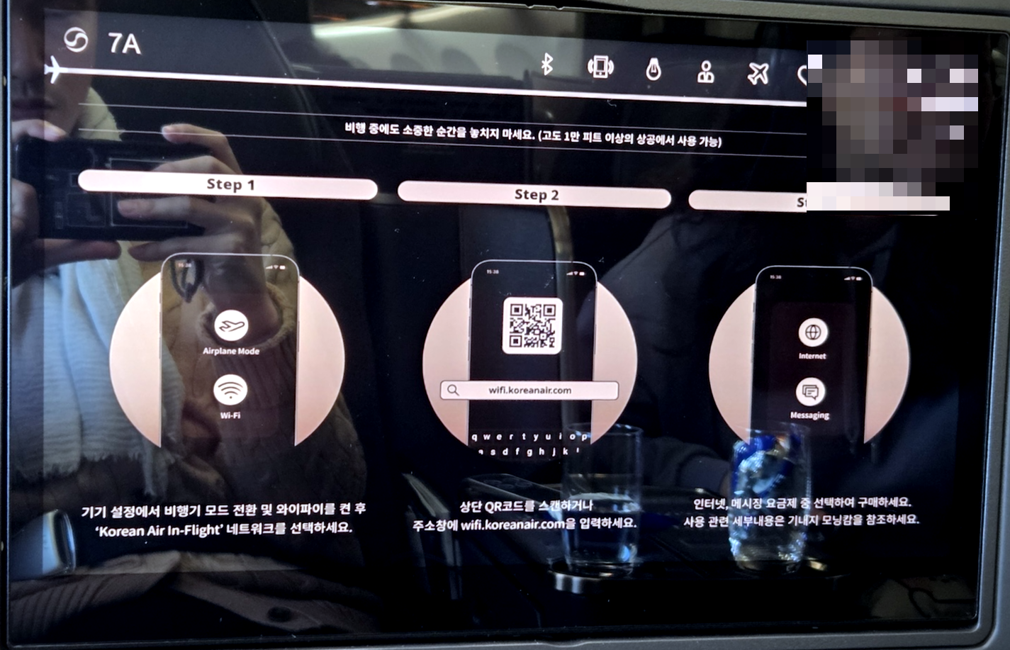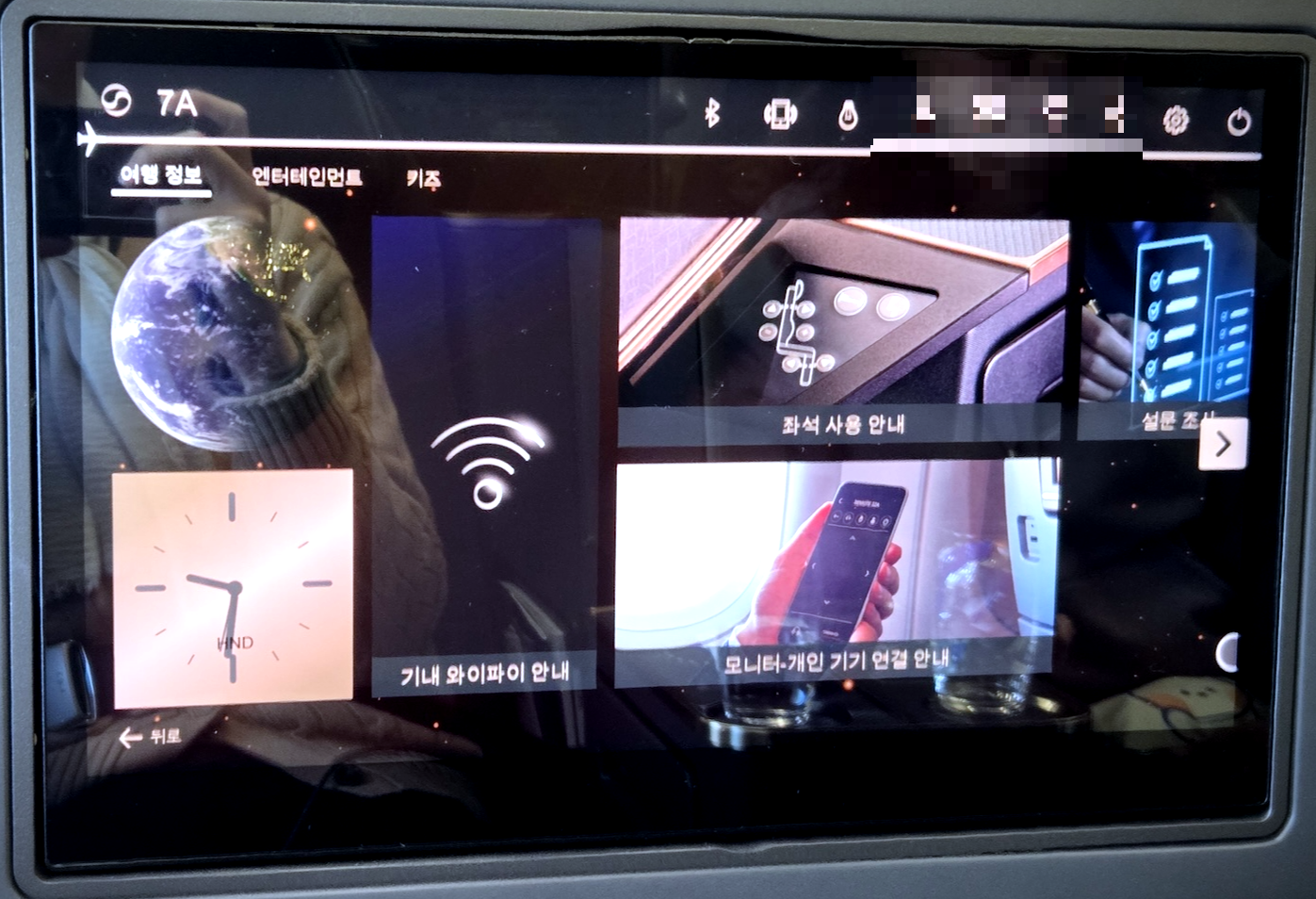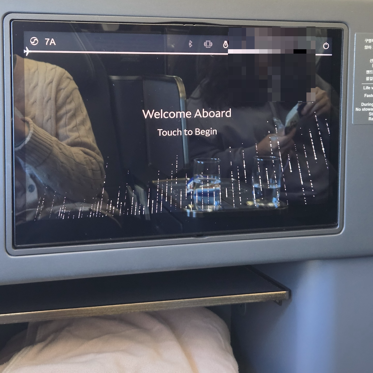 - 탑승 좌석: 7A, 프레스티지석, 창가석, 벌크헤드석
