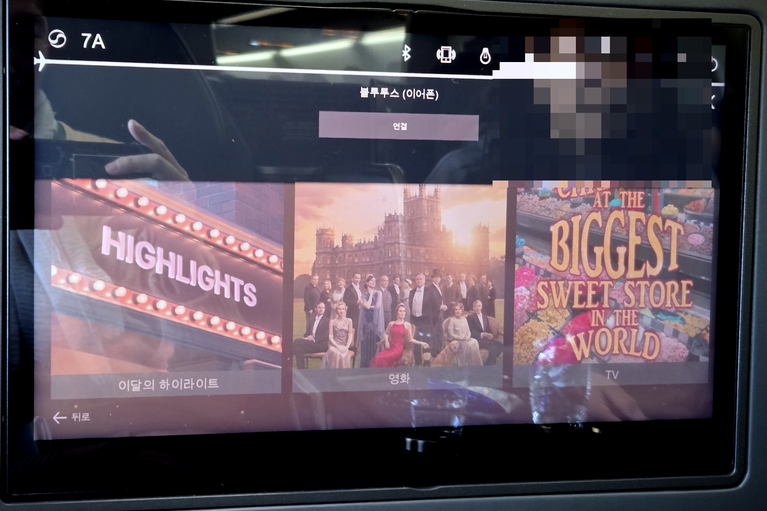 누워서 바라본 대한항공 A321neo 프레스티지 클래스 기내 엔터테인먼트 모니터 대한항공 A321neo에는 새롭게 개편된 기내 엔터테인먼트 시스템이 탑재되어 있습니다. 최신 트렌드에 맞춰 전반적으로 어두운 톤의 UI 디자인을 채택했는데, 이 디자인이 하드웨어와 만나 의외의 불편함을 야기했습니다. 기내 엔터테인먼트 스크린에 반사 방지코팅이 되어 있지 않은 상태에서 인터페이스까지 어둡다 보니, 기내 조도가 밝을 경우 화면에 얼굴이 거울처럼 비치는 현상이 심했습니다. 영상에 온전히 집중하기 어려울 정도로 반사가 심해, 몰입감을 해치는 단점으로 작용했습니다. 또한, 노이즈 캔슬링 헤드셋의 성능이 아주 좋지 않은 상황에서 기내 엔터테인먼크 시스템의 최대 음량도 크지 않은 편이라 평소에 음악이나 영화를 큰 소리로 감상하시는 분들께는 부족할만한 음량이었습니다.