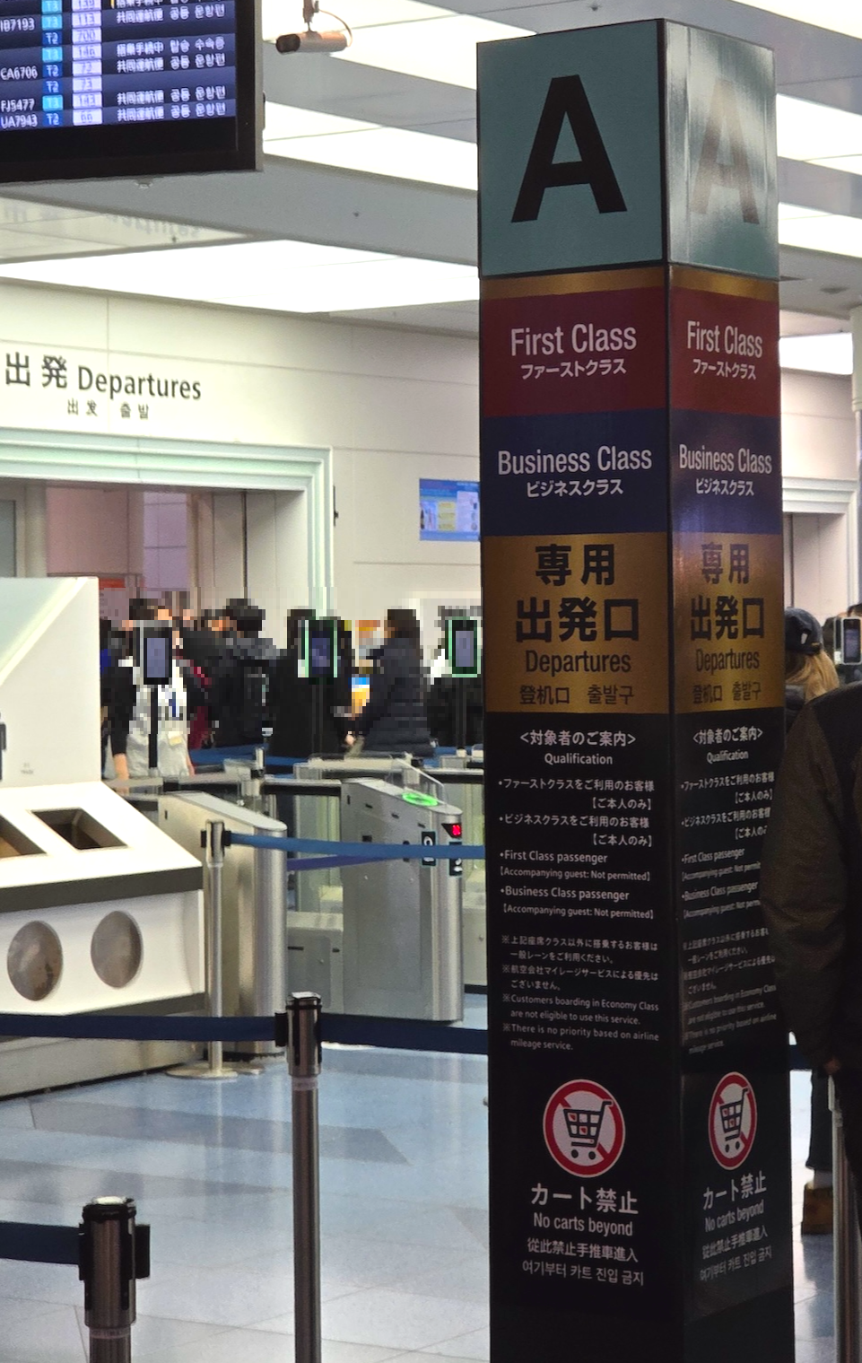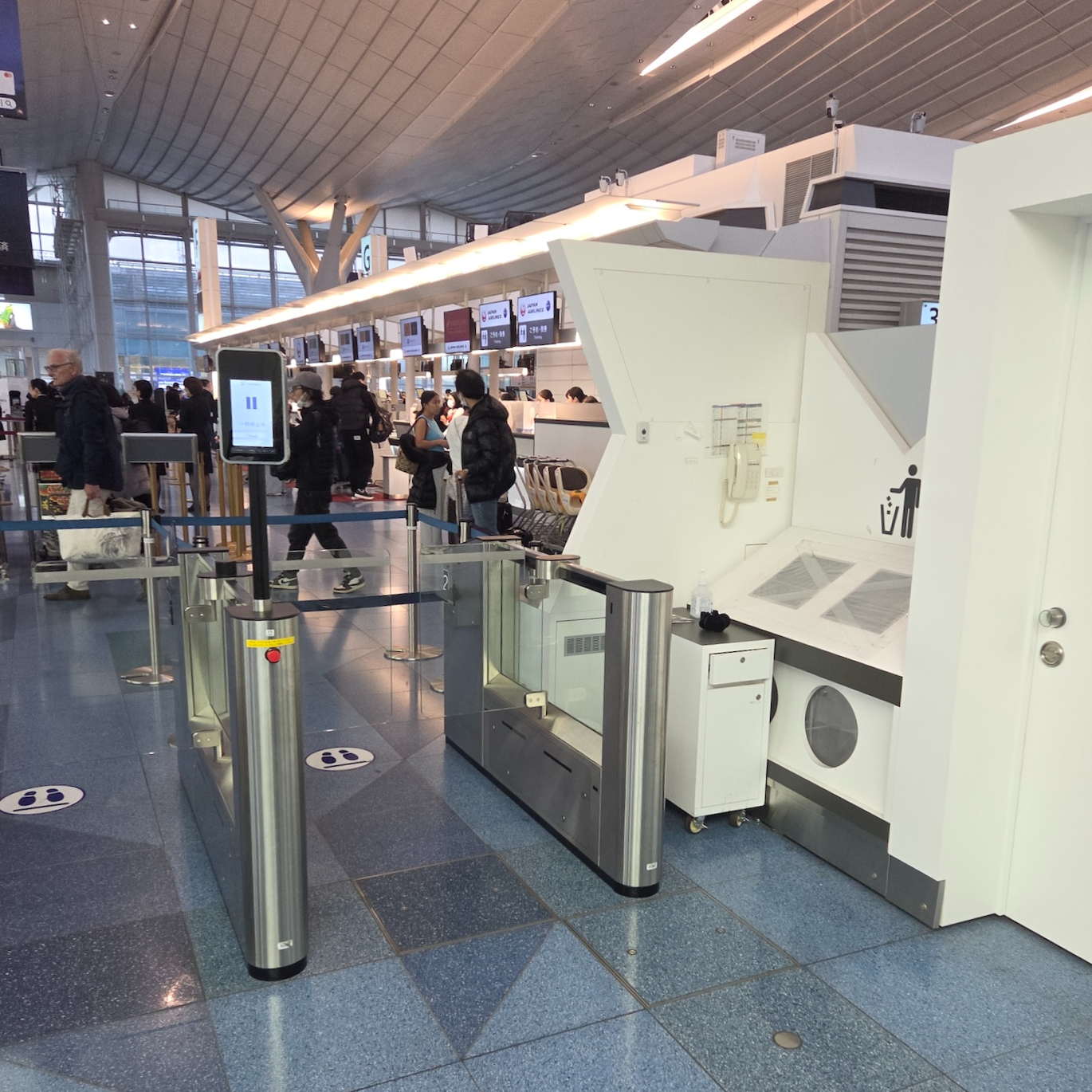 도쿄 하네다 국제공항 패스트트랙 입구(좌)와 반대 방향에서 바라본 사람이 많이 없는 패스트트랙 입구(우) 도쿄 하네다 국제공항 3터미널에서 대한항공 프레스티지 클래스를 이용할 경우, 패스트 트랙(Fast Track) 보안검사대를 이용할 수 있습니다. 제가 방문한 날은 공항이 매우 붐볐음에도 불구하고, 패스트 트랙 덕분에 보안 검사와 출국 심사를 단 10분 만에 마치고 에어사이드로 진입할 수 있었습니다. 한 가지 아쉬운 점은 대한항공 체크인 카운터에서 패스트 트랙 이용 가능 여부를 별도로 안내해 주지 않았다는 점입니다. 하네다 공항을 이용하는 프레스티지석 승객이라면 카운터 안내가 없더라도 잊지 말고 꼭 패스트 트랙을 활용하시기 바랍니다.