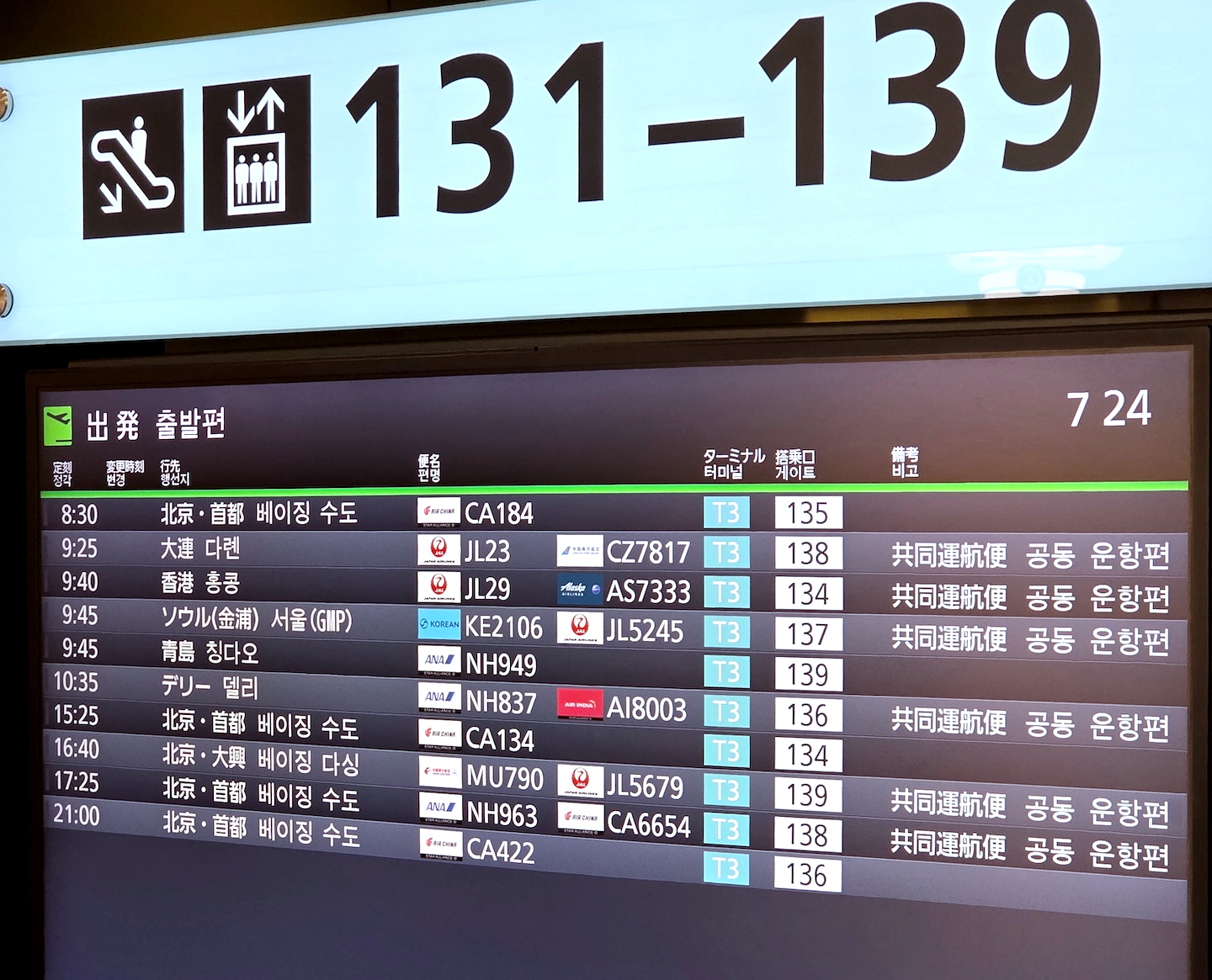 도쿄 하네다 국제공항 131~139번 게이트 입구 제가 이용했던 KE2106편의 탑승은 하네다 공항 137번 게이트에서 이루어졌습니다. 이곳은 버스를 타고 주기장까지 이동해야 하는 리모트 게이트입니다. 해당 편은 대개 리모트 게이트를 이용하므로 예정보다 이른 출발 40분 전부터 탑승이 시작됩니다. 이용하실 분들은 이 점을 참고하여 늦지 않게 게이트로 이동하시는 것이 좋습니다.