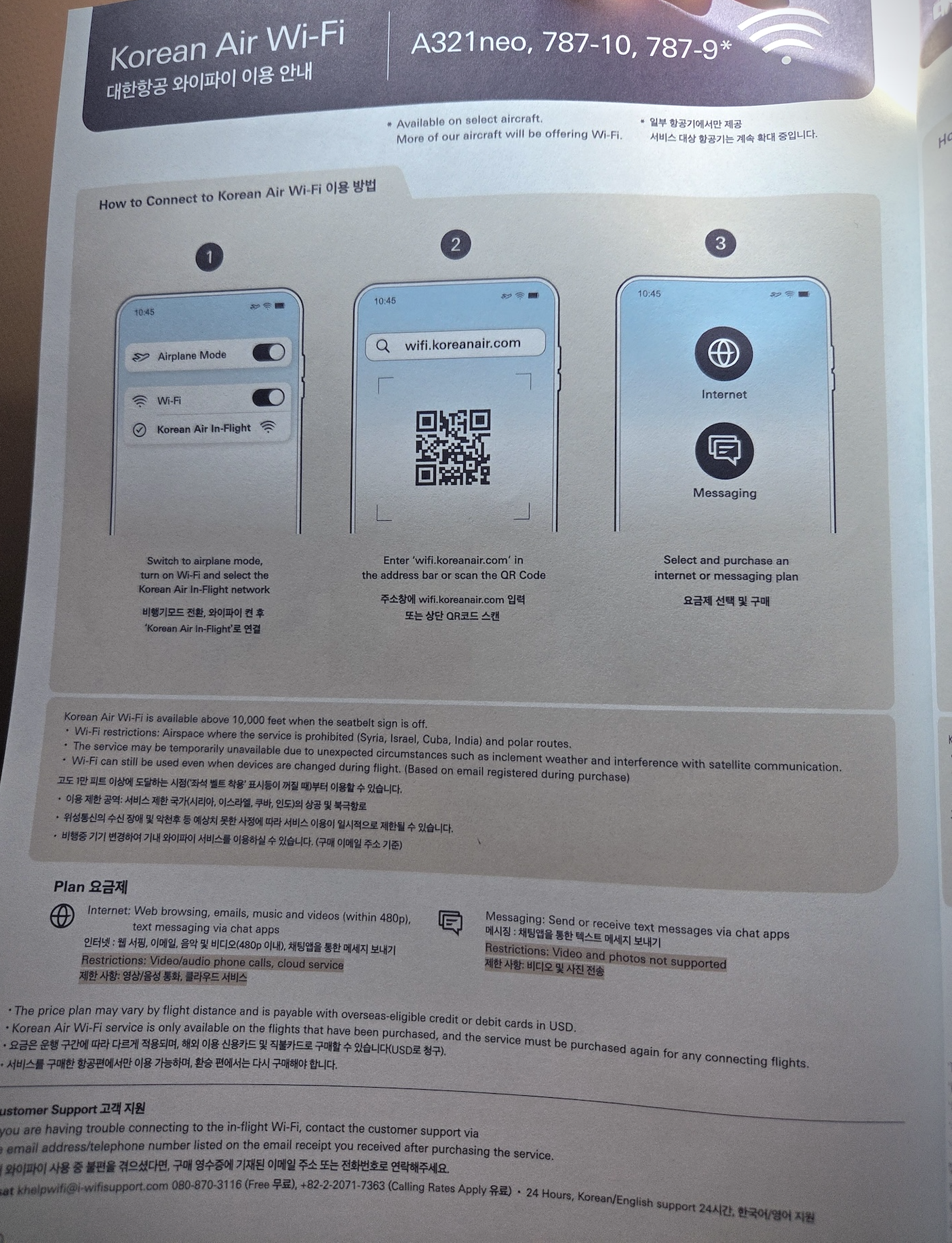 대한항공 A321neo 기내 와이파이 접속 정보 또한, 대한항공 A321neo 기종은 유료 기내 와이파이 서비스를 제공합니다. 이번 비행은 단거리 노선인 데다 급한 업무도 없어 직접 이용하지는 않았지만, 탑승객에게 연결성이라는 선택지를 제공한다는 점은 분명한 플러스 요인이자 글로벌 트렌드에 발맞춘 긍정적인 변화라고 생각합니다.
