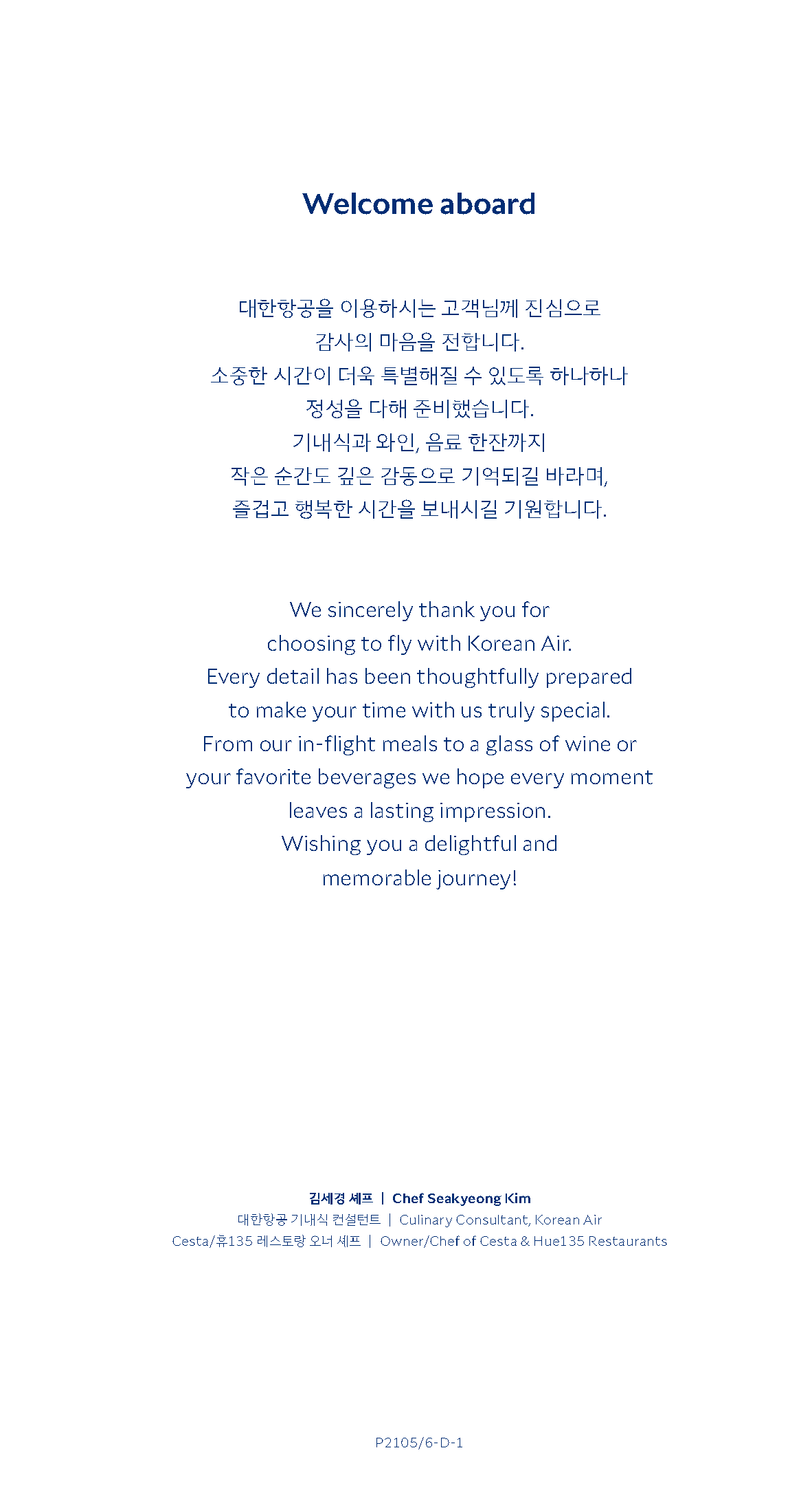 대한항공 A321neo 기내 면세 판매 책자, 기내지, 메뉴판