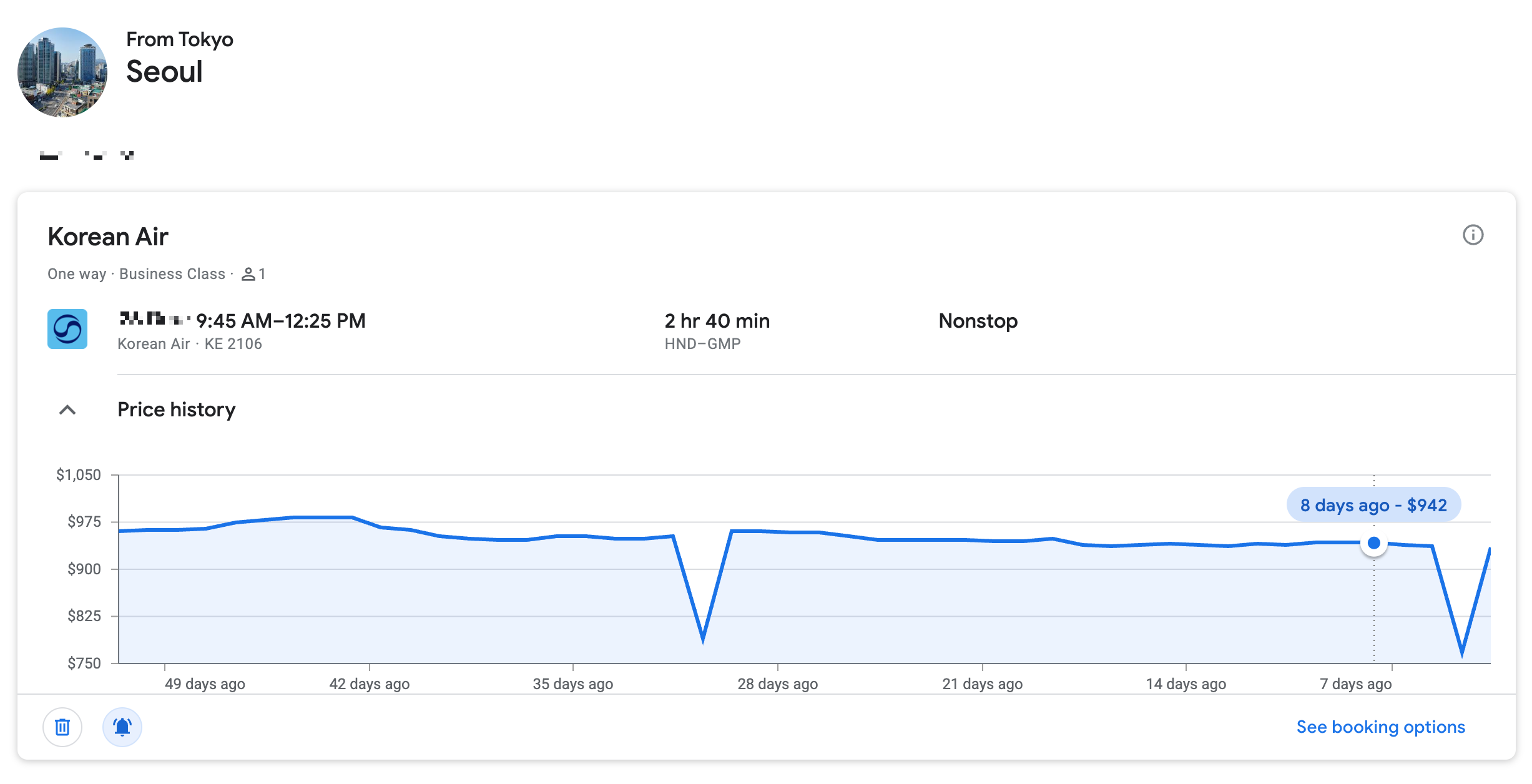 델타항공 스카이마일즈로 발권할 수 있는 대한항공 도쿄 서울 노선 (c) delta.com