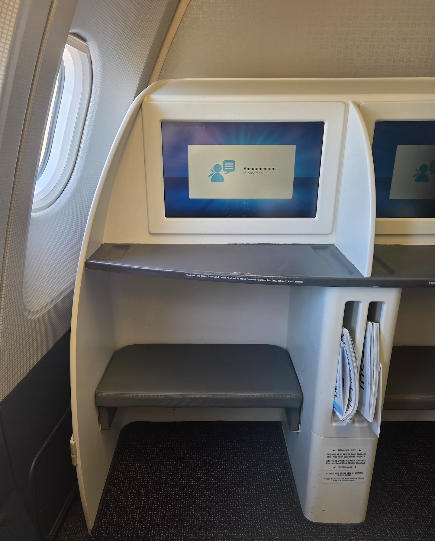 대한항공 A330-300 프레스티지 클래스 1A 좌석 스크린, 오토만, 선반
