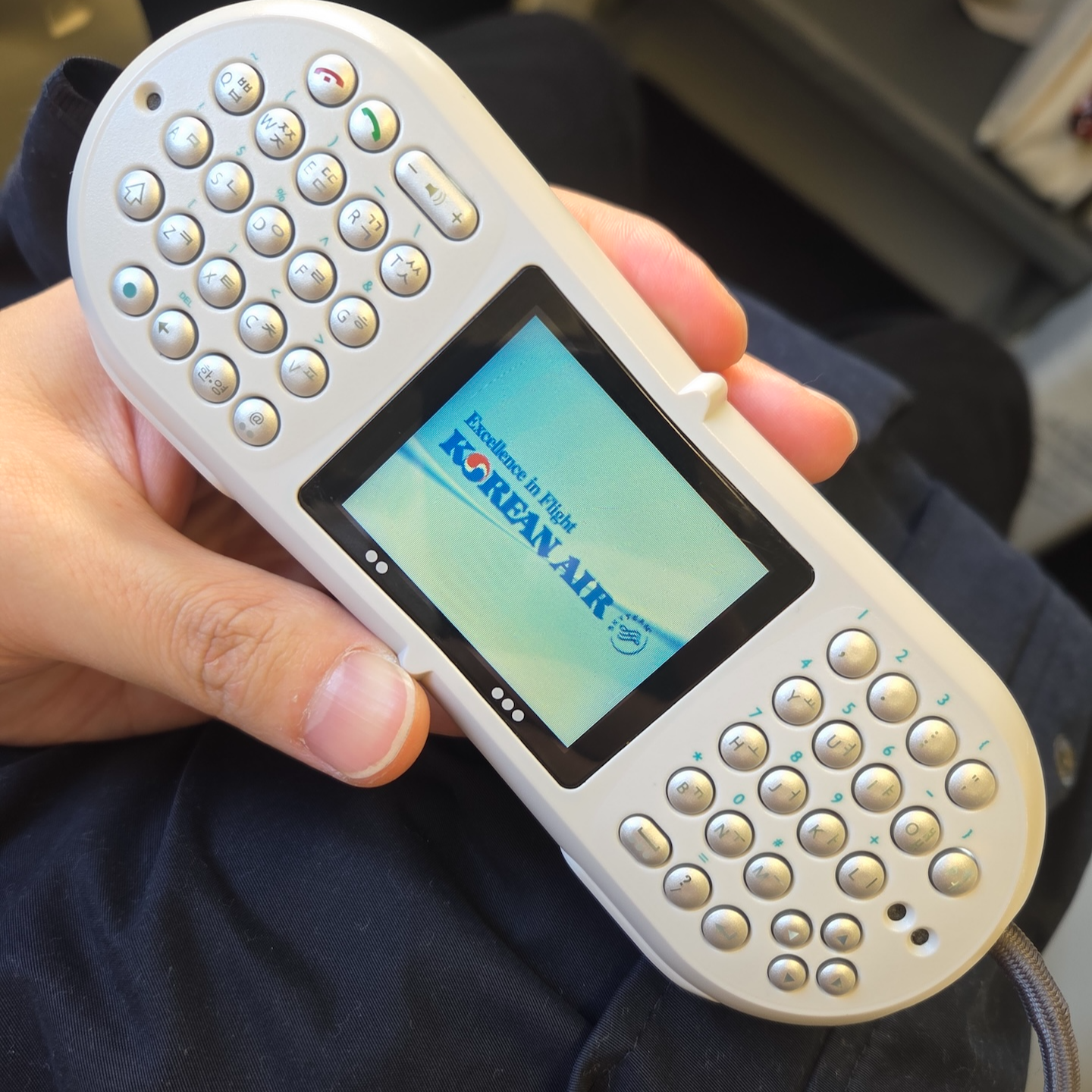 대한항공 A330-300 프레스티지 클래스 1A 좌석 리모컨 국내선 비행임에도, 기내 엔터테인먼트 스크린과 시스템이 탑재되어 있어서 짧은 시간이지만 기내 엔터테인먼트를 즐길 수도 있었습니다. 다만, 국제선처럼 좌석에 따로 헤드셋이 놓여있지는 않았고 아마 탑승 때 비행기 출입문 앞에 놓여있었던 이어폰을 가져와야 하는 것 같습니다. 이 항공기가 국내선 전용으로 이용되는 항공기는 아니기에, 기내 엔터테인먼트 시스템이 국제선 시스템과 다를 것 같지는 않지만, 탑재된 컨텐츠가 미묘하게 바로 직전에 이용했던 A321NEO와 다른 것처럼 느껴졌습니다. 아마 기종별로 약간의 차이는 있는 것 같습니다. 화면은 터치도 되지만 화면까지 거리가 꽤 멀기 때문에 유선 이어콘을 사용하는 게 더 편했습니다.