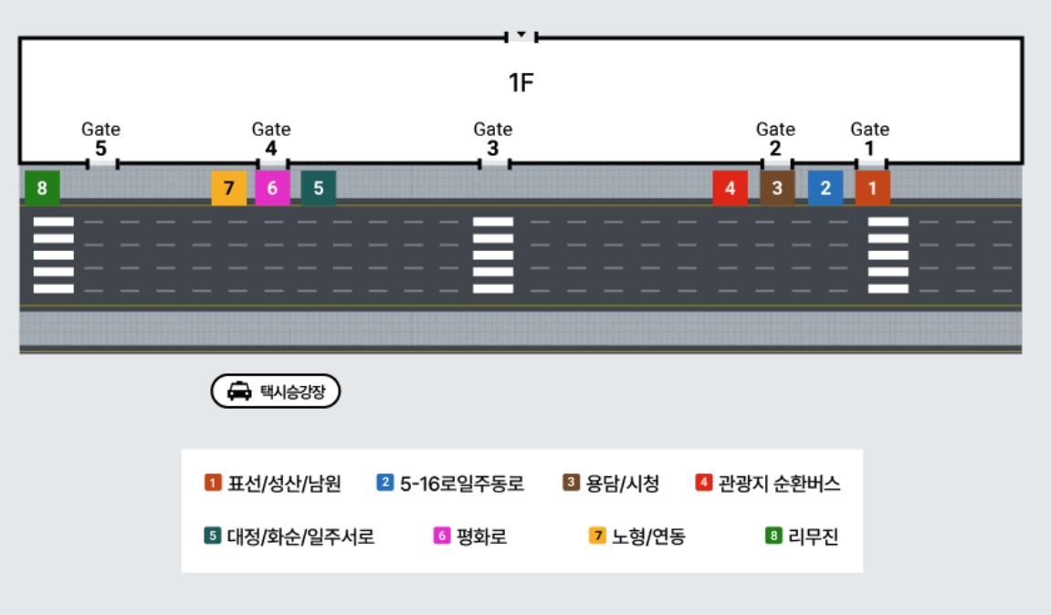 많은 분들이 제주도에 오시면 렌터카를 빌리시는데, 렌터카를 빌리신 경우 렌터카 셔틀 사인을 따라 5번 출입구 쪽으로 나가셔서 빌리신 렌터카 업체에서 운행하는 셔틀버스에 탑승하신 후 각 렌터카 업체로 이동하실 수 있습니다. 버스를 이용하셔서 목적지까지 이동하시는 경우 도착층에 마련되어 있는 버스 정류장에서 바로 버스를 이용하실 수 있습니다. 버스 정류장은 1번부터 8번까지 있으며 버스 정류장에 따라 목적지가 달라지니 이점 참고하셔서 이용하시면 될 것 같습니다.