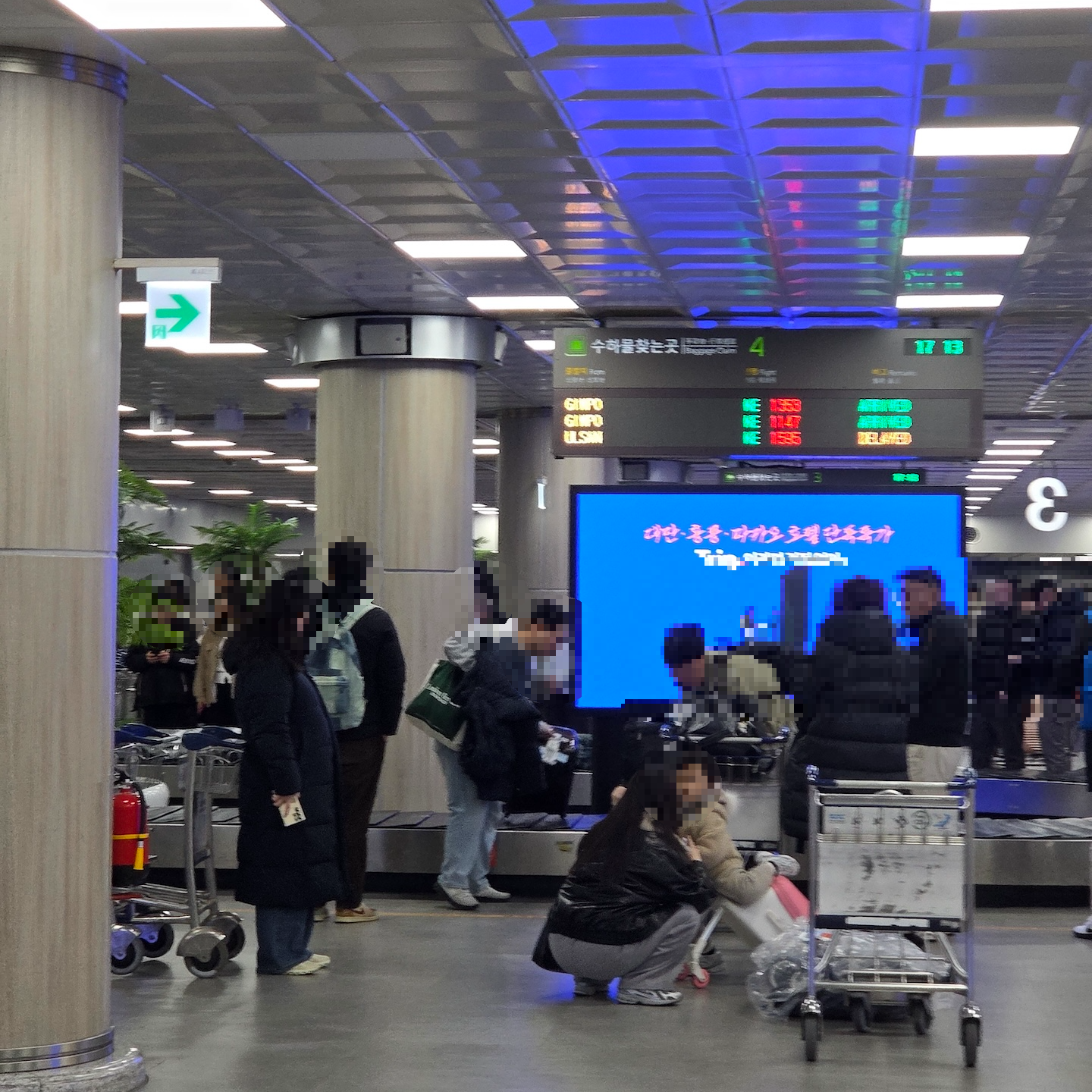 남해 상공과 제주 국제공항 제가 탑승한 KE1147편은 랜딩 과정에서 약간의 흔들림이 있었지만 큰 문제없이 제주 공항에 도착했습니다. 김포 국제공항에서 출발시간이 늦어진 만큼, 제주 국제공항 게이트에 도착한 시간도 예정 시간보다 15분 늦은 17시 10분이었습니다. 위탁 수하물의 경우 한층 아래로 내려가면 나오는 수하물 수취대에서 찾을 수 있습니다.