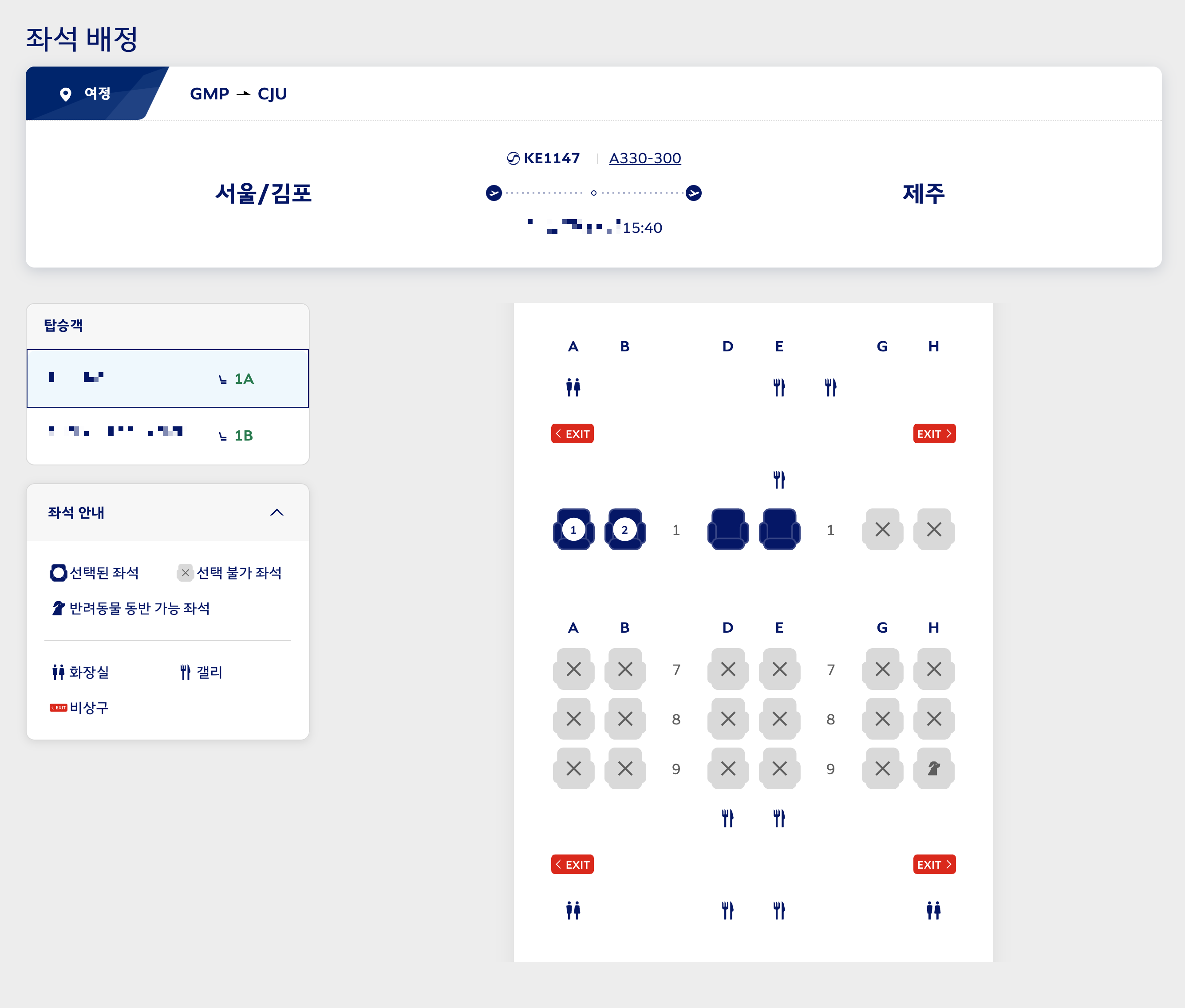 - 탑승 좌석: 1A, 프레스티지석, 창가석