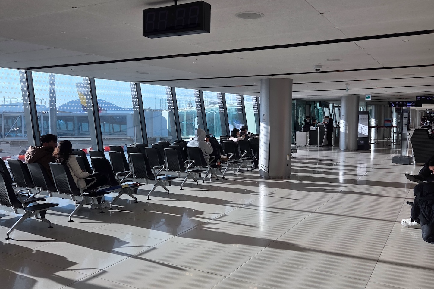김포 국제공항 국내선 터미널 8번 게이트 김포국제공항을 출발해 제주국제공항으로 가는 대한항공 KE1147 편의 탑승구는 8번 탑승구였습니다. 출발 시간은 원래 15시 40분이었지만, 15분 늦어서 15시 55분 출발로 변경되었고, 이에 따라 탑승도 조금 늦은 15시 30분에 시작했습니다.