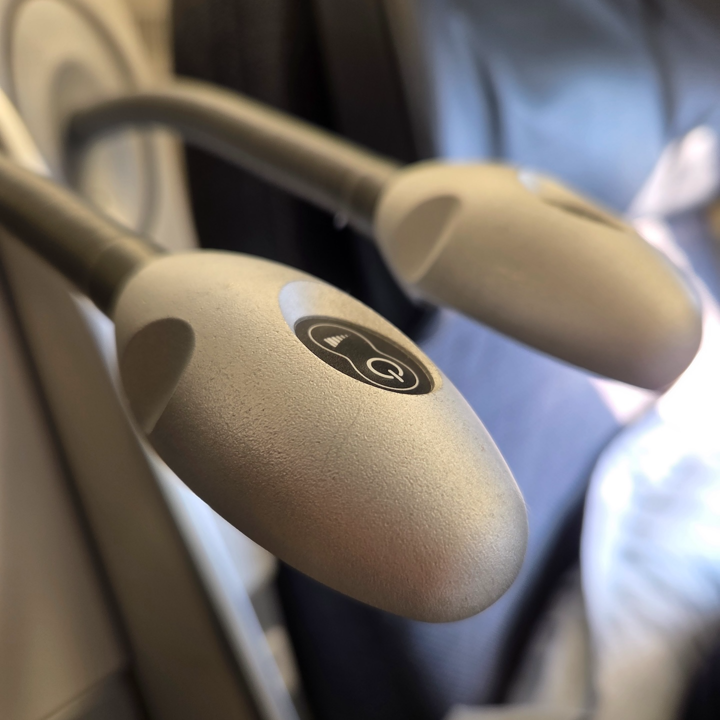대한항공 A330-300 창문과 개인 독서등 대한항공의 프레스티지 슬리퍼 좌석의 경우 최근의 트렌드와 너무나도 동떨어진 구형 좌석이고, 대한항공의 프레스티지 클래스 좌석 중에서도 구형에 속하는데요, 그럼에도 평평한 침대로 바꿀 수 있다는 점과 복도 2개 짜리 광동체 항공기가 제공하는 공간감을 고려해 볼 때 국내선 비행에는 차고 넘치는 좌석이었다고 생각합니다.