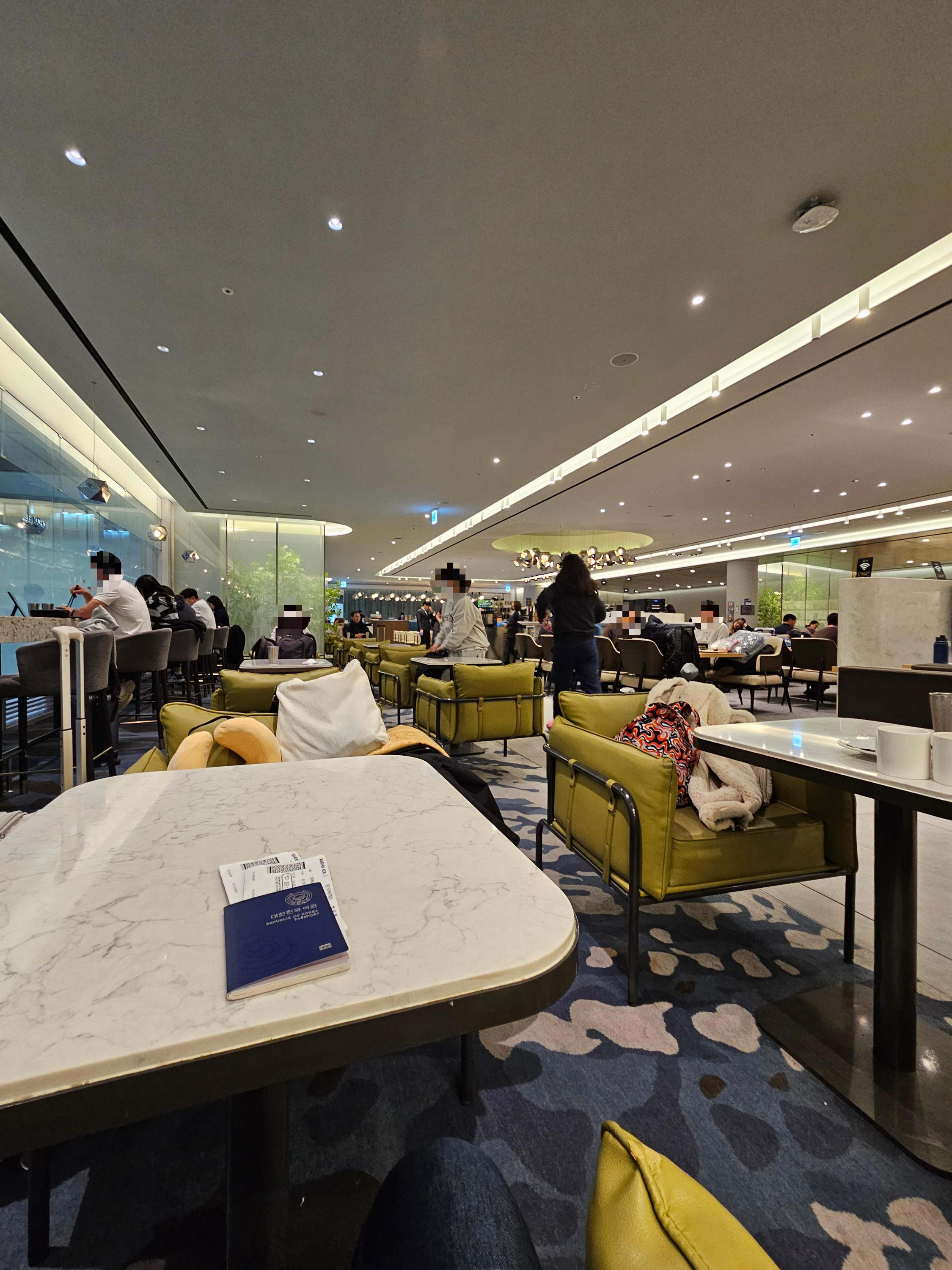요즘 복잡하다는 인천공항에 대한 이야기를 해보자면요, 저는 3시간 20분 전에 공항에 도착했는데도 해야 할 일들이 많아서 굉장히 빠듯했습니다. 먼저, 온라인 체크인이 되지 않아 카운터에서 체크인을 해야 했고요, 면세품도 찾아야 했고, Tax-free 구입품들도 공항에서 환급을 받아야 했습니다. 공항 체크인 카운터에서 체크인하는데 거의 40분 정도 걸렸고요, 보안검사와 출국 수속을 받는데 1시간 정도가 걸렸습니다. 면세품 인도는 얼마 걸리지 않아서 한 10분 정도 걸렸고요 Tax-Free 환급의 경우 한 10분 정도 걸렸는데, 제 뒤로 금방 줄이 길어져서 그 이상 걸리신 분들도 있는 것 같더라고요. 마티나 라운지 입장하는데 20분 정도 걸렸고, 라운지에서 한 15분 머물렀습니다. 게이트도 하필이면 제일 끝쪽에 있어서 걸어가는데 10분 정도 걸린 것 같고 제가 게이트에 도착했을 때는 프레스티지 클래스 탑승이 거의 막바지였습니다.