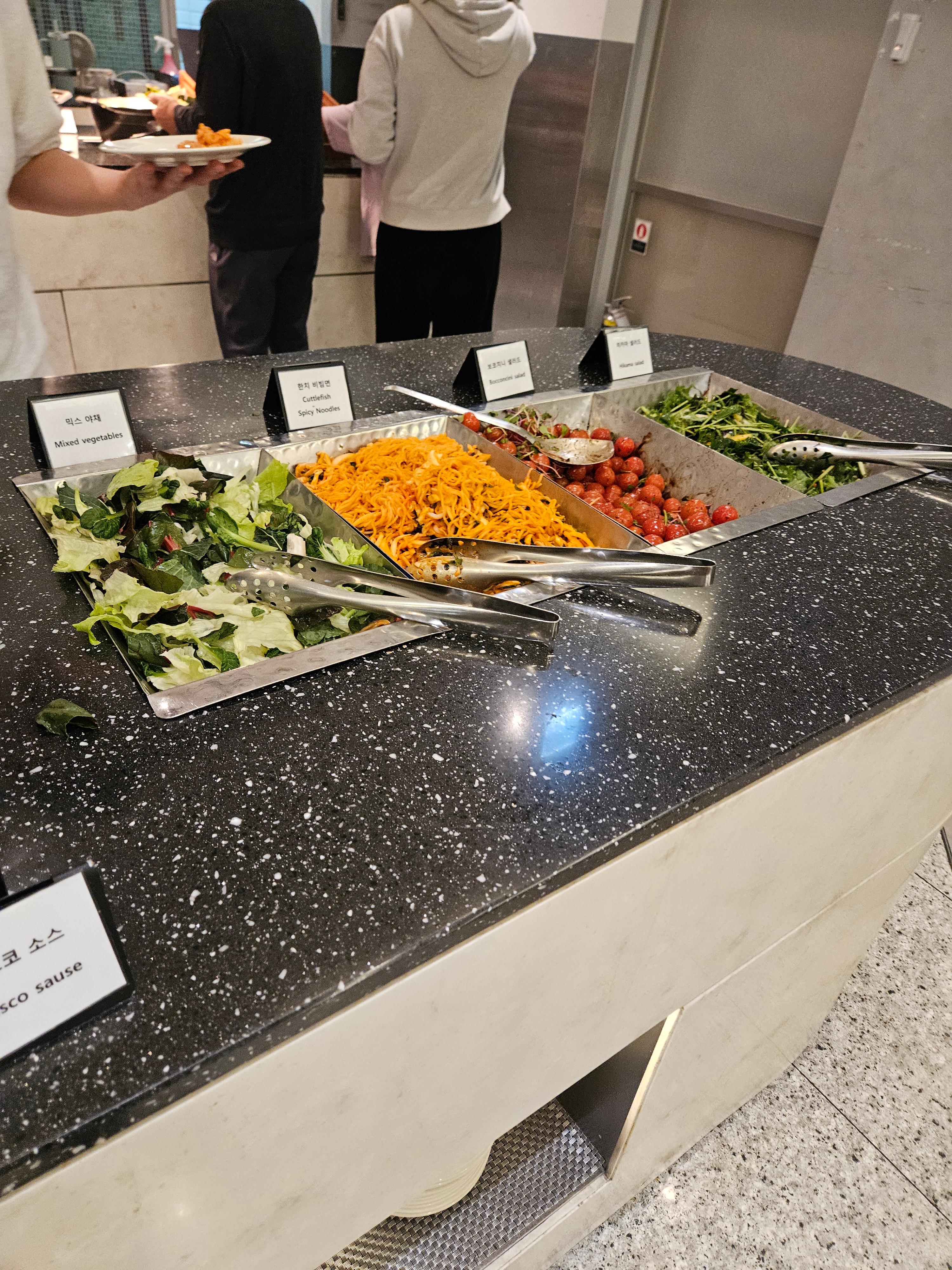인천공항 제2터미널 마티나 라운지 음식 마티나 라운지의 내부는 넓고 앉을자리도 많이 마련되어 있지만, 오전 시간대나 저녁 시간대에는 이용객들이 항상 많아 북적거리는 분위기입니다. 따로 샤워 시설은 마련되어 있지 않고 라운지 내부에 화장실이 위치하고 있지 않아서 외부의 화장실을 이용해야 하는데 걸어서 약 2분 정도 걸리는 거리에 있습니다. 마티나 라운지는 확실히 선택과 집중을 잘 한 라운지로 음식의 종류와 양과 질이 좋은데 비해 다른 시설은 부족합니다. 하지만 대부분의 경우 음식과 주류/음료를 위해 라운지에 방문하는 만큼 크게 문제가 될 것 같지는 않습니다.