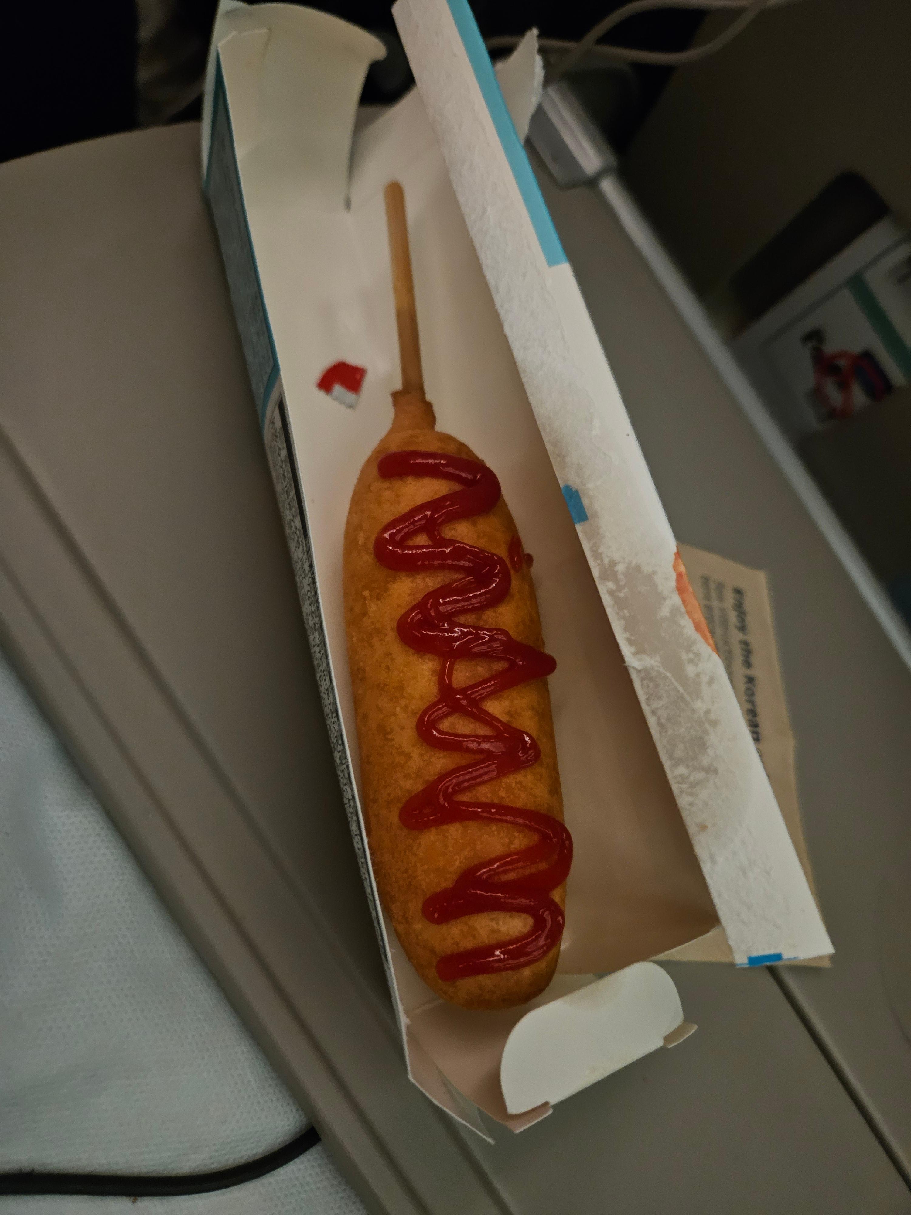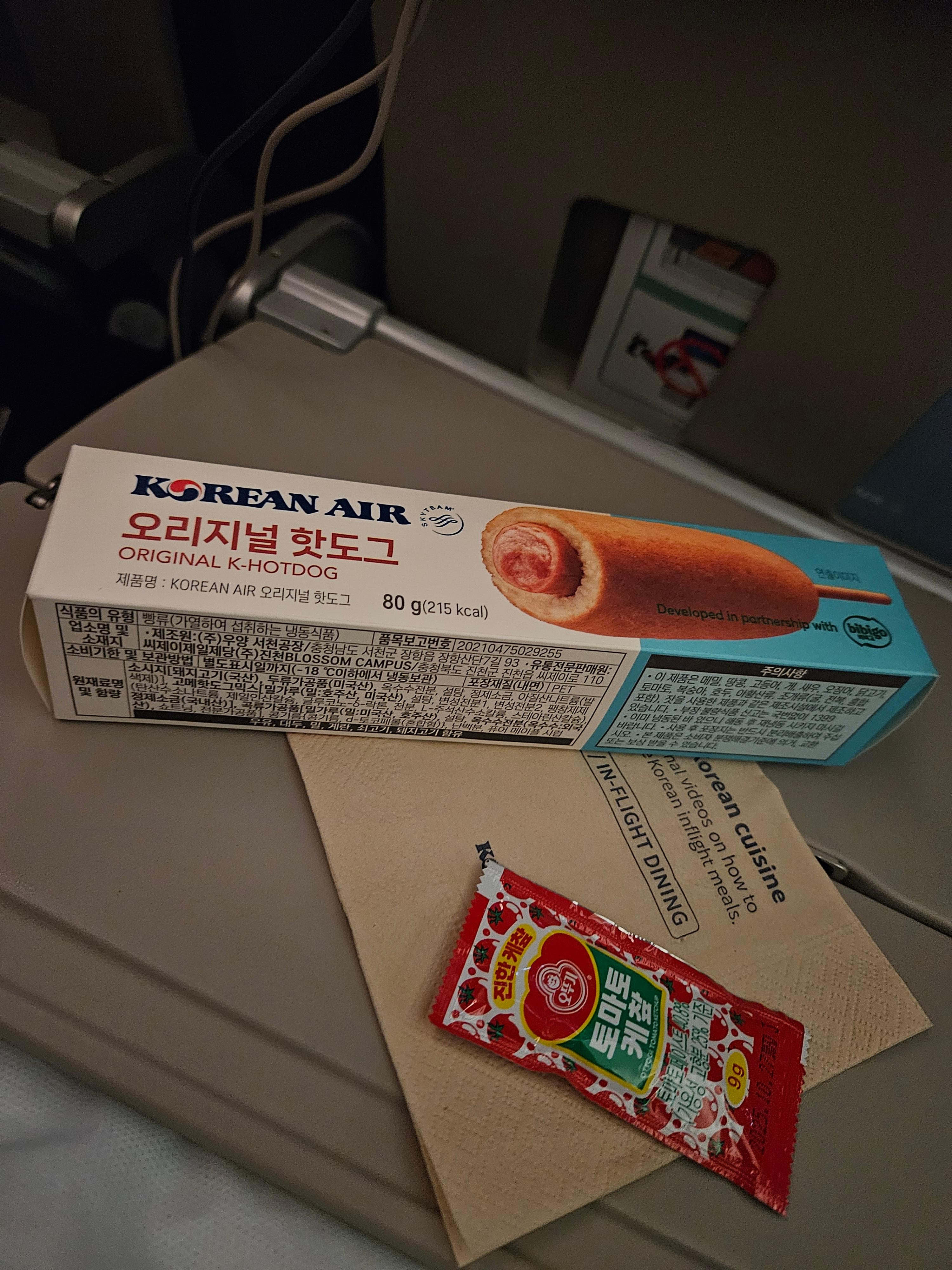 대한항공 KE32편 이코노미 클래스 이륙 후 간식 핫도그