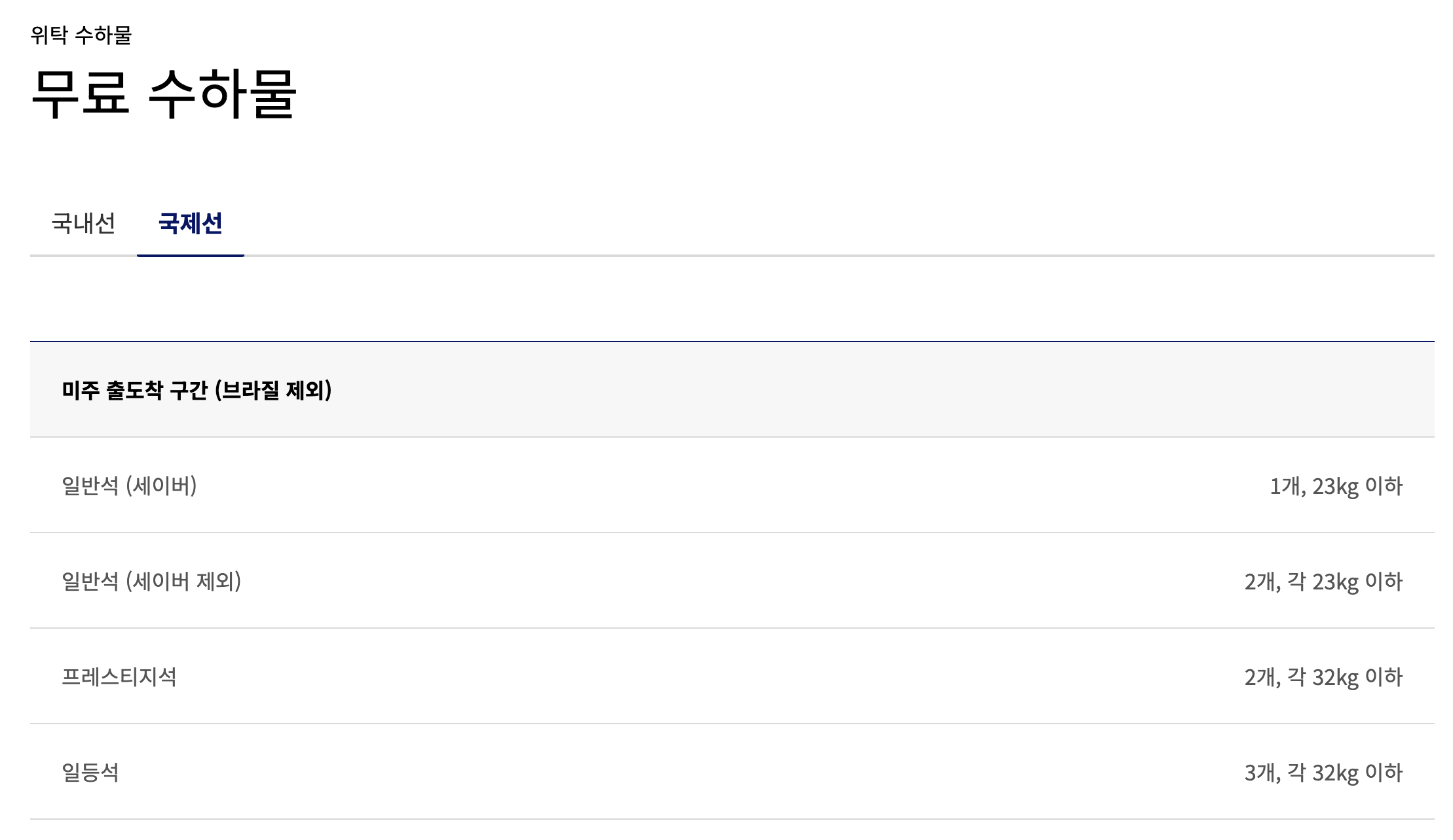 대한항공 미주행 노선 무료 위탁 수하물, image courtesy of Korean Air 일반적으로 대한항공 미주노선 이코노미 클래스 승객의 경우 23kg 수하물 2개까지 무료로 위탁이 가능했는데요, 현재는 이코노미 클래스 승객 중 세이버 운임을 구입한 승객의 경우 23kg 수하물 1개만 무료로 위탁이 가능합니다. 버진 애틀랜틱 포인트를 이용해 대한항공 파트너 발권을 하는 경우 아직까지는 23kg 수하물 2개가 무료로 위탁이 가능했습니다. 참고로 현재 대한항공 시스템이 온라인으로는 발권 전까지 스텐다드인지, 세이버인지 알 수 없고 발권 후에만 알 수 있다고 합니다.