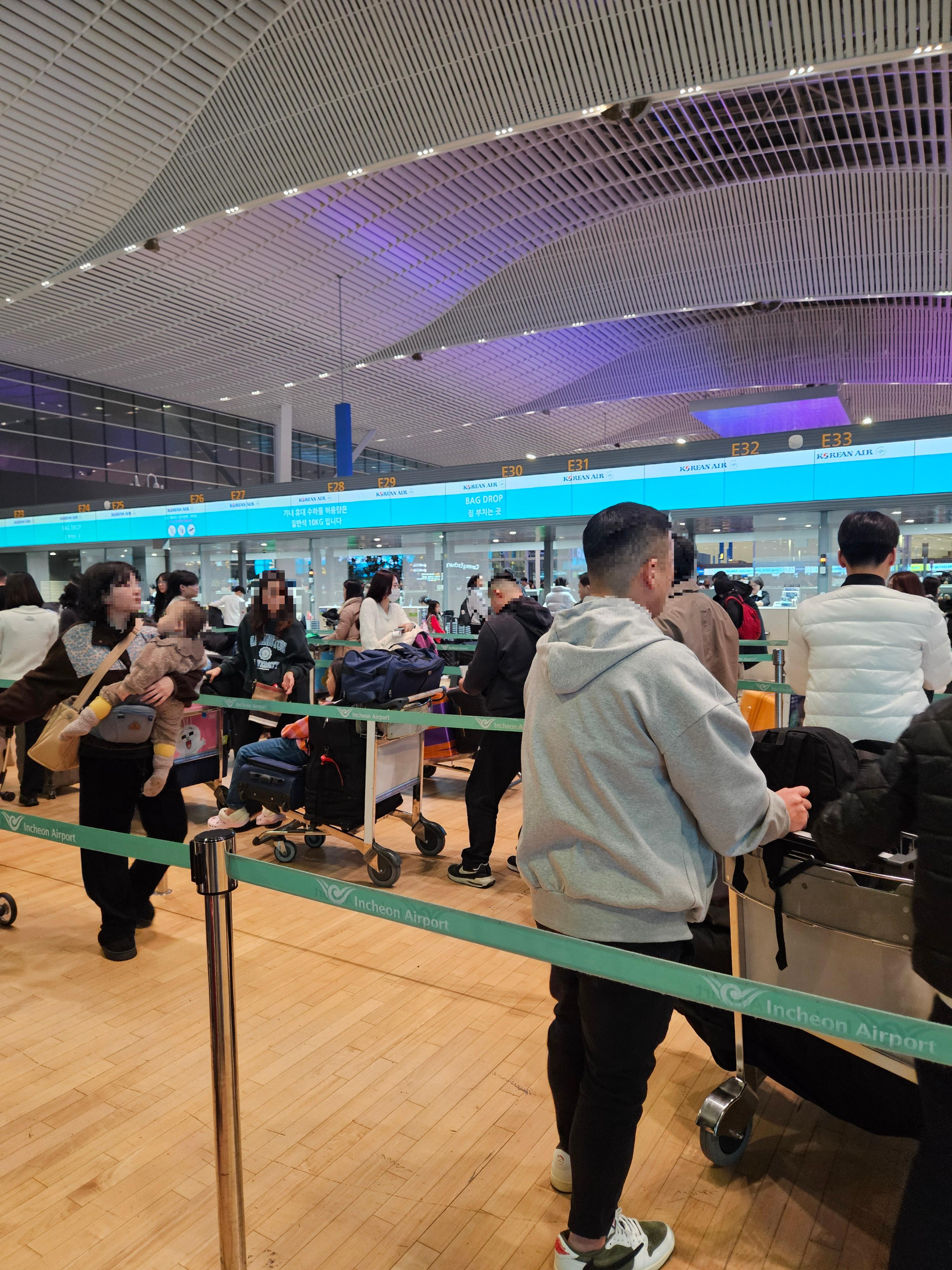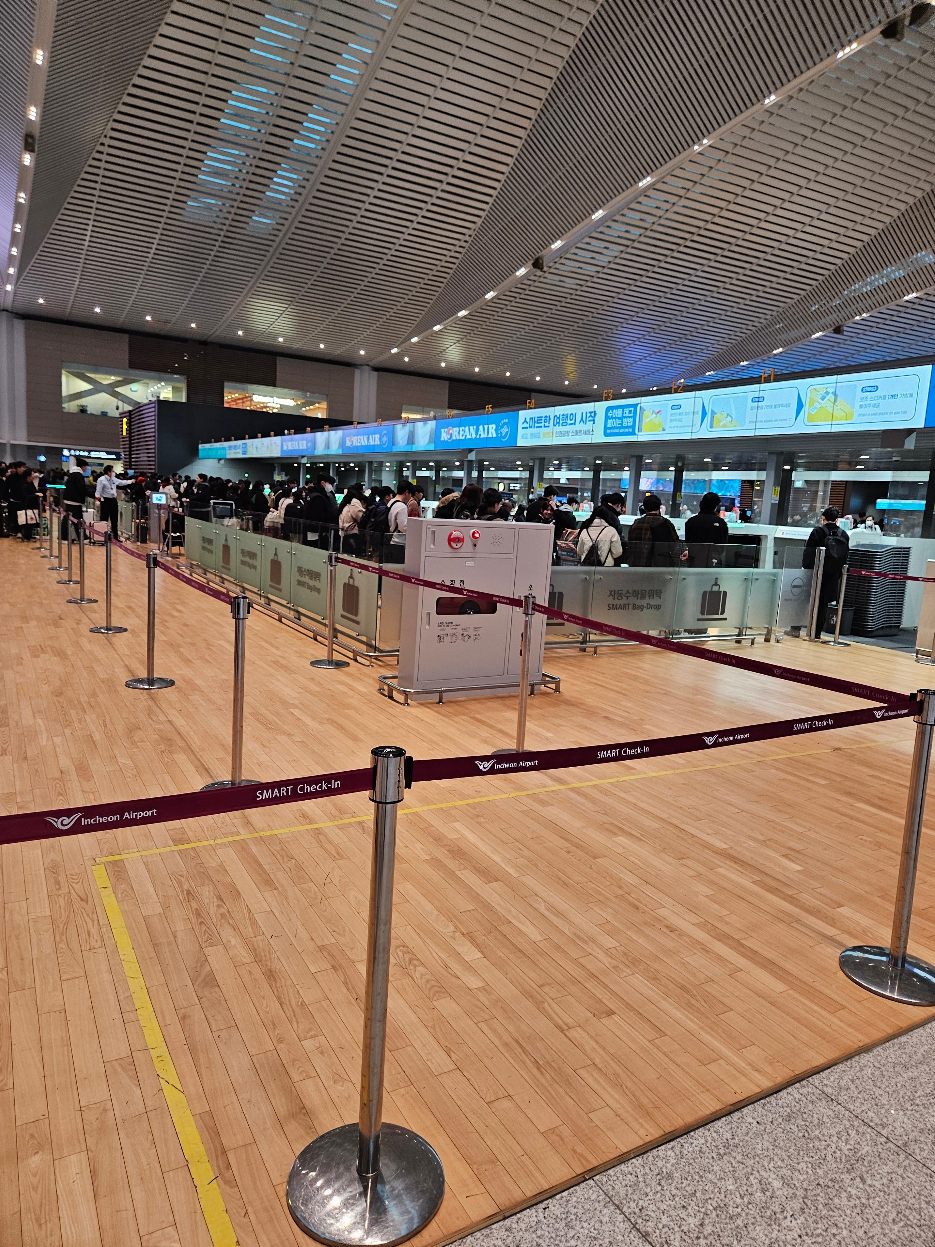 요즘 복잡하다는 인천공항에 대한 이야기를 해보자면요, 저는 3시간 20분 전에 공항에 도착했는데도 해야 할 일들이 많아서 굉장히 빠듯했습니다. 먼저, 온라인 체크인이 되지 않아 카운터에서 체크인을 해야 했고요, 면세품도 찾아야 했고, Tax-free 구입품들도 공항에서 환급을 받아야 했습니다. 공항 체크인 카운터에서 체크인하는데 거의 40분 정도 걸렸고요, 보안검사와 출국 수속을 받는데 1시간 정도가 걸렸습니다. 면세품 인도는 얼마 걸리지 않아서 한 10분 정도 걸렸고요 Tax-Free 환급의 경우 한 10분 정도 걸렸는데, 제 뒤로 금방 줄이 길어져서 그 이상 걸리신 분들도 있는 것 같더라고요. 마티나 라운지 입장하는데 20분 정도 걸렸고, 라운지에서 한 15분 머물렀습니다. 게이트도 하필이면 제일 끝쪽에 있어서 걸어가는데 10분 정도 걸린 것 같고 제가 게이트에 도착했을 때는 프레스티지 클래스 탑승이 거의 막바지였습니다.