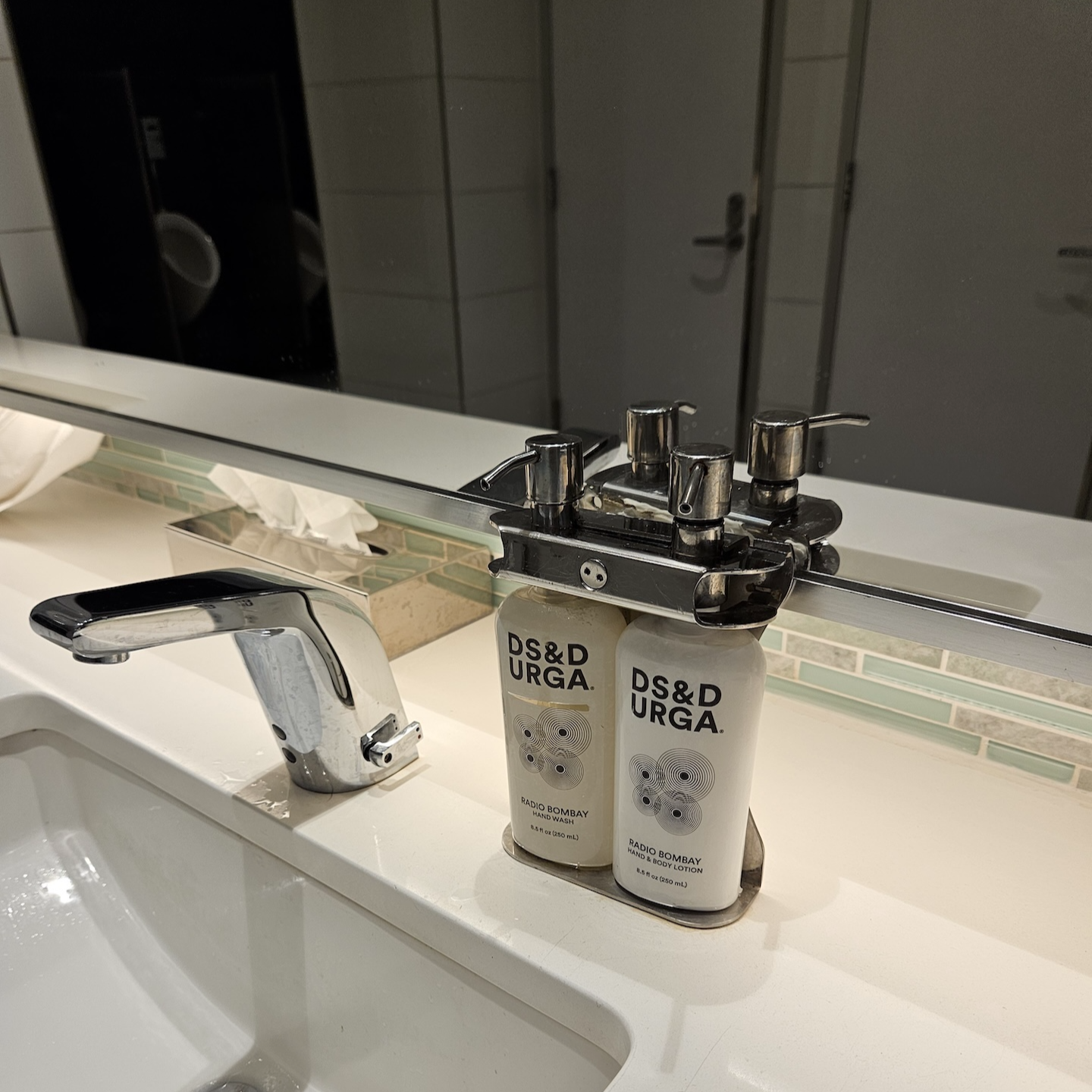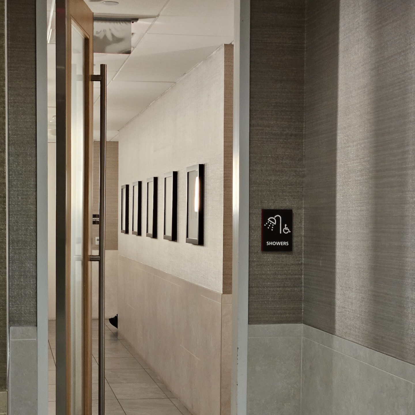 댈러스 포트워스 공항 아메리칸 항공 플래그십 라운지 샴페인 서비스, 샤워실, 화장실 어매니티 음료 스테이션과 서비스 데스크 사이에는 샤워실과 화장실이 있습니다. 샤워실은 라운지 입구 카운터 직원에게 요청해 이용할 수 있으며 샤워실과 화장실 모두 더럽지 않은 상태로 잘 관리되고 있었습니다. 마지막으로 라운지 입구에는 샴페인 스테이션이 있습니다. 이곳에는 항상 직원이 상주하는데 라운지에 입장하면서 요청하면 웰컴 드링크로 샴페인을 받을 수 있습니다. 물론 이 샴페인은 셀프서비스 바에서도 이용할 수 있습니다.