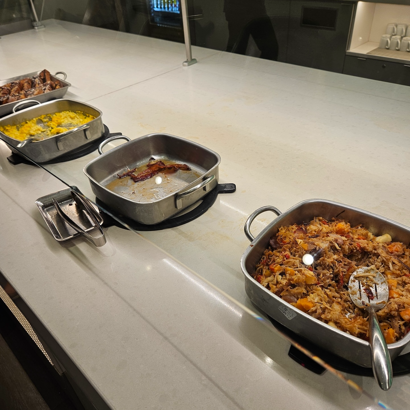 하지만 미국 3개 항공사의 프리미엄 라운지 중 아메리칸 항공의 플래그십 라운지는 델타 원 라운지와 폴라리스 라운지보다는 등급이 조금 떨어지는 편입니다. 아무래도 세 라운지 중 가장 오래되기도 했고, 아메리칸 항공은 여전히 제대로 된 국제선 일등석을 운영하는 만큼 일등석 라운지인 플래그십 다이닝과 플래그십 라운지 간의 차별화도 필요하기 때문이리라 생각됩니다.