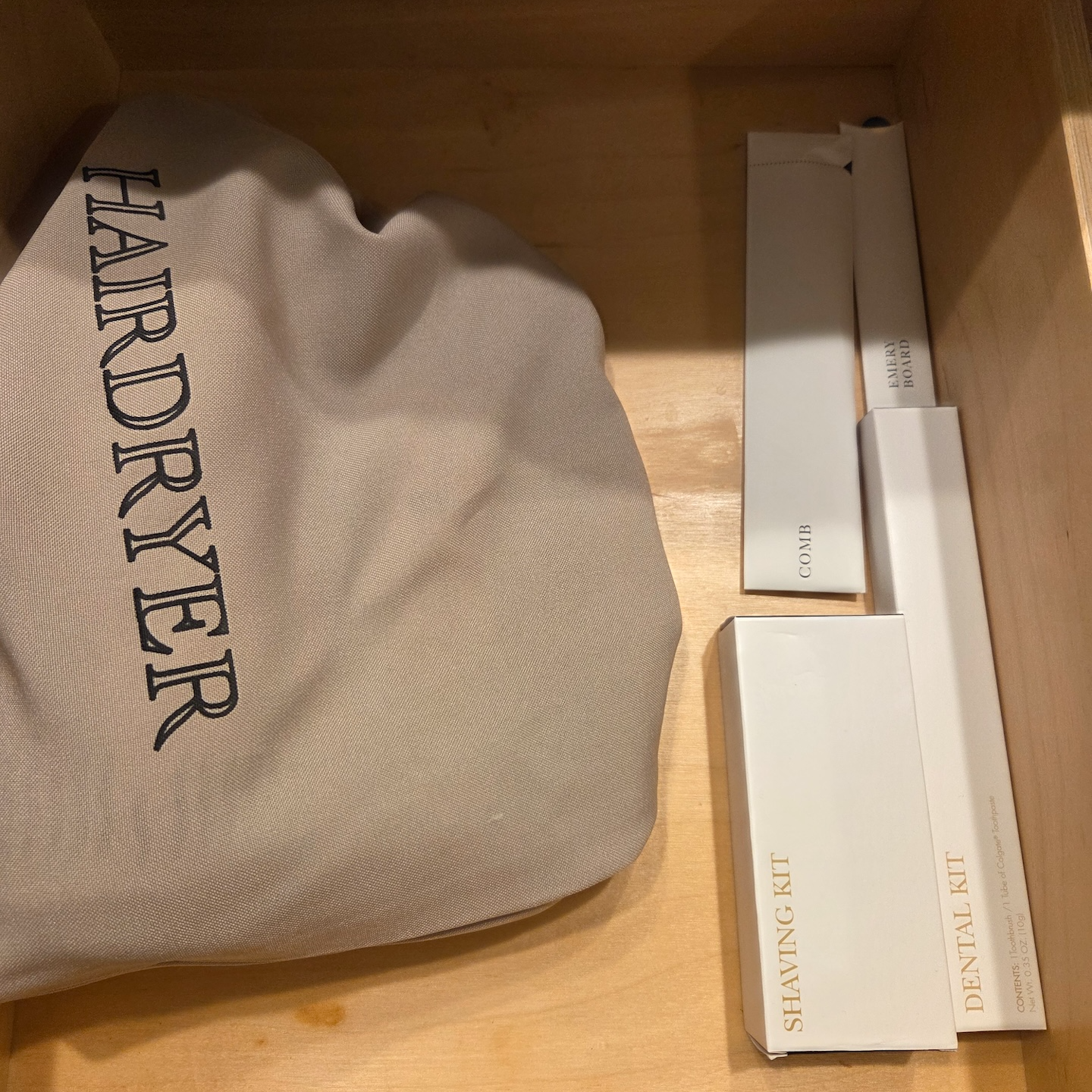 이외에도 헤어드라이어, 덴탈 키트, 면도 키트, 빗, 에머리 보드, 샤워캡, 마우스워시, 화장솜과 면봉 등 기본적인 욕실 어매니티가 모두 객실 내에 구비되어 있었는데, 별도 요청 없이 대부분의 어매니티가 기본 제공된다는 점은 확실한 장점이었습니다.