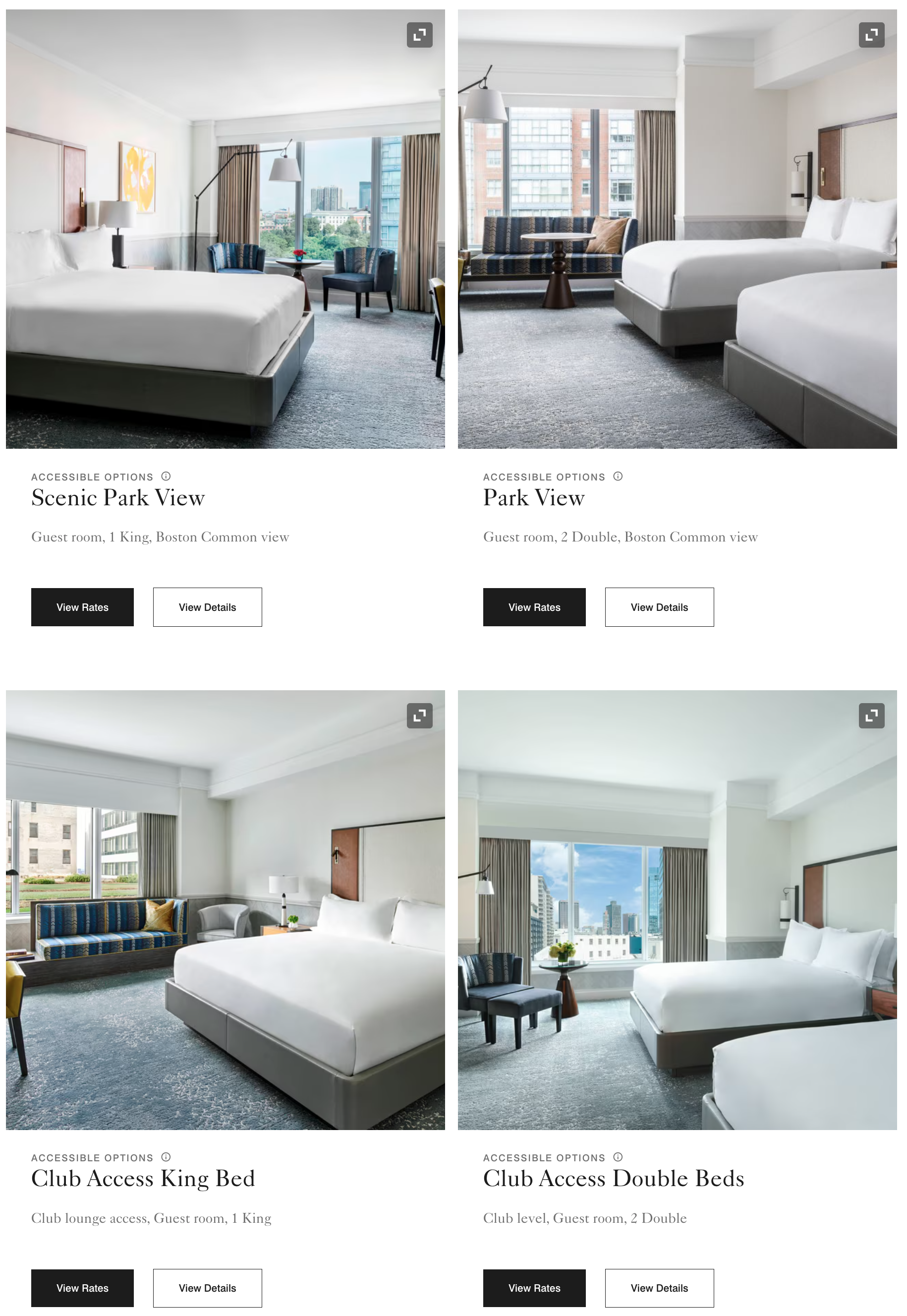 더 리츠 칼튼 보스턴 게스트 룸 가격 (c) marriott.com 더 리츠 칼튼 보스턴의 일반 객실인 게스트룸은 침대 구성에 따라 킹 사이즈 침대 1개가 들어가는 1킹 게스트룸과, 더블 사이즈 침대 2개가 들어가는 1 더블 게스트룸으로 나뉩니다. 두 타입 모두 전망에 따라 가장 기본적인 테라스 뷰, 보스턴 다운타운을 바라보는 시티 뷰, 보스턴 커먼을 바라보는 시닉 파크 뷰 및 파크 뷰로 세분화되며, 여기에 클럽 라운지 이용이 가능한 클럽 액세스 객실 옵션도 존재합니다. 모든 게스트룸의 크기는 425 sqft(약 38㎡)로 동일하며, 내부 구성에서도 큰 차이는 없습니다. 가장 저렴한 테라스 뷰 1킹 게스트룸의 비수기 최저가는 세금 포함 약 500달러 초반 수준이며, 클럽 라운지 이용이 포함된 클럽 액세스 1킹 객실은 약 700달러 초반부터 시작합니다. 참고로 보스턴의 비수기는 일반적으로 11월 중순부터 2월 말까지의 겨울 시즌이며, 5월 말부터 7월까지가 성수기로 분류됩니다.