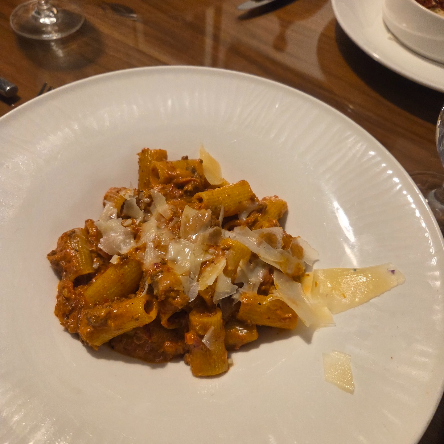 더 리츠 칼튼 보스턴 인룸 다이닝 음식 대신 FHR 혜택으로 받은 $100 크레딧은 인룸 다이닝에 사용했습니다. 더 리츠 칼튼 보스턴은 24시간 인룸 다이닝 서비스를 제공하며, 오후 10시 30분 이후에는 메뉴가 일부 제한되지만 기본적인 서비스는 계속 이용할 수 있습니다. 저는 뉴 잉글랜드 클램 차우더, 리가토니 볼로네제, 와규 버거를 주문했습니다. 클램 차우더는 미리 만들어 둔 것을 데워주는 방식이 아닌, 갓 조리된 느낌이었고 짜지 않으면서도 조개의 풍미가 잘 살아 있어 만족스러웠습니다. 와규 버거는 오픈 형태로 제공되었으며 피클과 프렌치 프라이가 함께 나왔습니다. 패티의 풍미는 좋았지만, 기본적인 케첩, 마요네즈, 디종 머스타드 외에 별도의 소스가 제공되지 않는 점은 다소 아쉬웠습니다. 리가토니 볼로네제 역시 전반적으로 완성도가 괜찮은 메뉴였습니다. 라구 소스는 과하게 짜지 않으면서 토마토와 고기의 풍미가 잘 어우러졌고, 파스타의 익힘 정도도 적절했습니다.