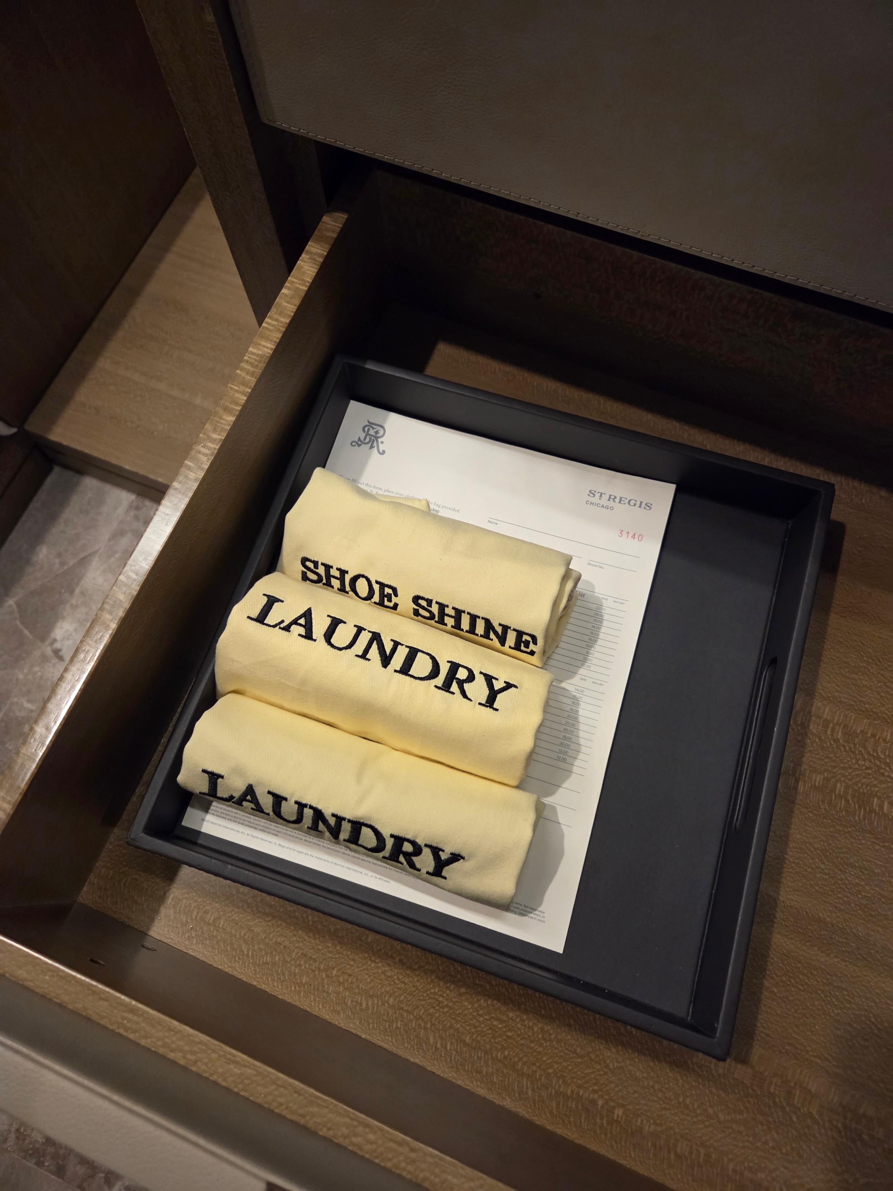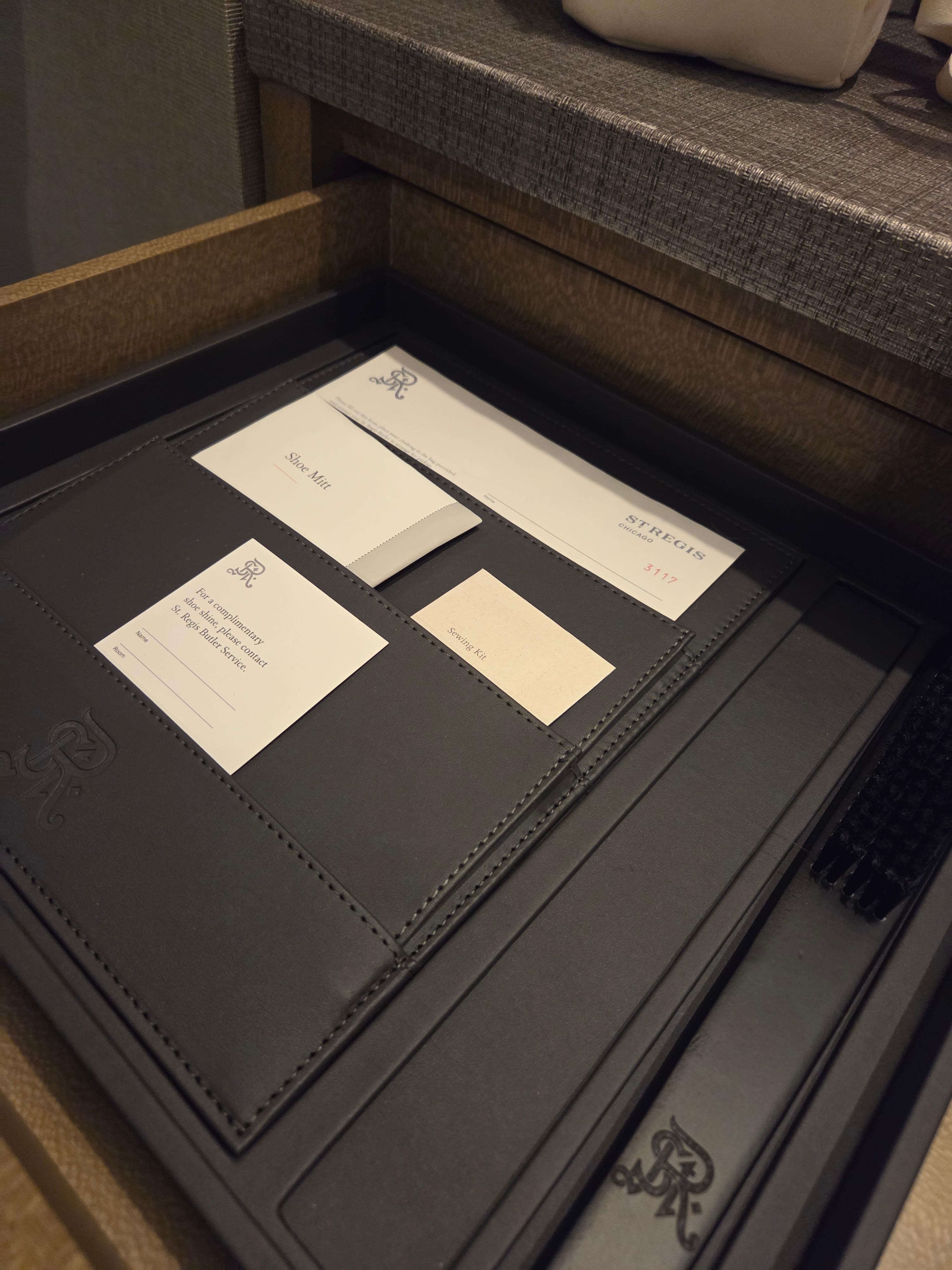 세인트 레지스 시카고 11층 휴식공간 세인트 레지스 브랜드가 다른 호텔 브랜드들과 차별화되는 특징으로는 바로 버틀러 시스템이 있습니다. 버틀러 시스템은 기본적으로 투숙객이 요청하는 건 다 들어준다는 컨셉인데요, 따라서 기본적인 요청사항부터 때로는 이게 가능할까 싶은 요청사항까지 처리해 주는 게 바로 버틀러입니다. 하지만 일반 투숙객의 경우 이 버틀러 시스템을 이용할 기회가 많지 않습니다. 따라서 대부분의 투숙객에게 세인트 레지스의 버틀러 시스템이 크게 와닿을 기회가 없습니다. 이건 저 또한 마찬가지인데요, 그럼에도 세인트 레지스에 방문하면 종종 이용하게 되는 서비스가 바로 모닝커피 서비스입니다. 세인트 레지스에서는 커피 서비스를 요청하면 요청한 커피나 티를 간단한 다과와 함께 원하는 시간에 제공합니다. 하지만 세인트 레지스 시카고의 경우 이 커피 서비스를 모든 투숙객에게 제공하지는 않습니다. 스위트룸 등 상위 등급의 객실에 투숙하는 고객들에게만 이 서비스를 제공하더라고요. 유상으로라도 서비스를 제공하는 것이 아닌 등급 객실에 따라 제공되는 버틀러 서비스가 다르다면, 이 호텔이 왜 굳이 세인트 레지스 브랜드여야 하는지 그 이유를 잘 모르겠습니다. 세인트 레지스 시카고의 경우 따로 다림 서비스에 대한 안내는 없었지만, 구두 광택 서비스는 제공하고 있었습니다.