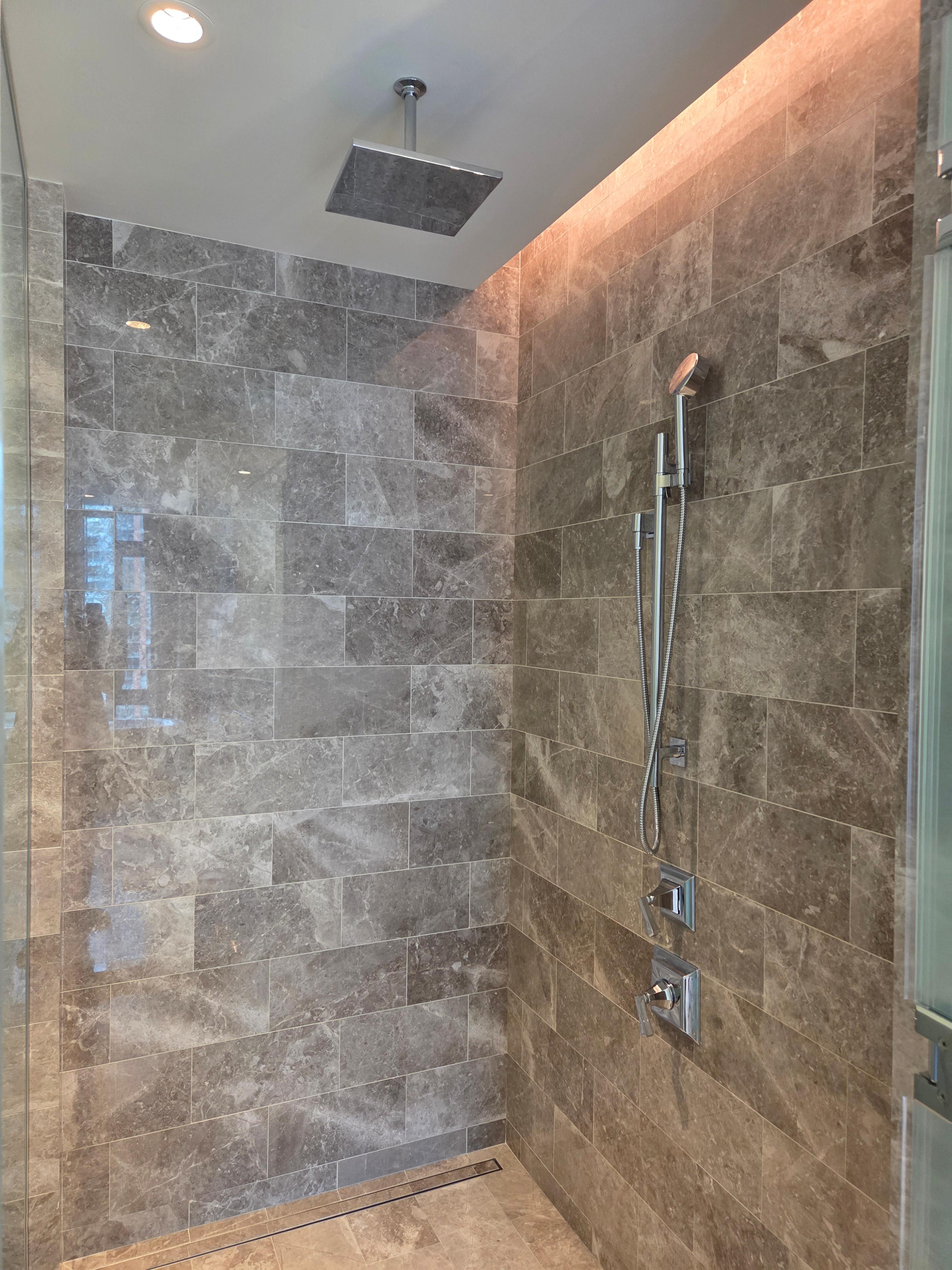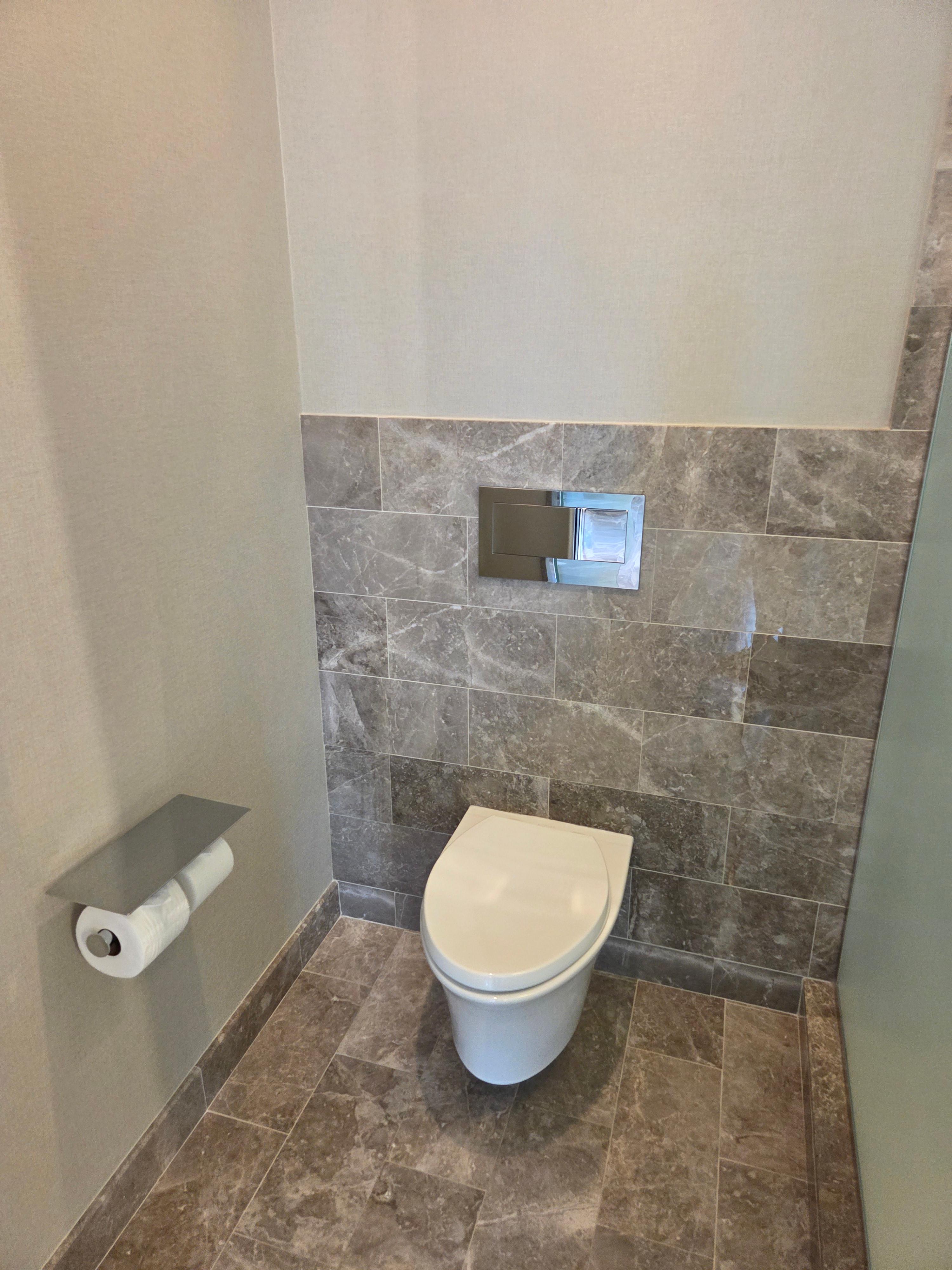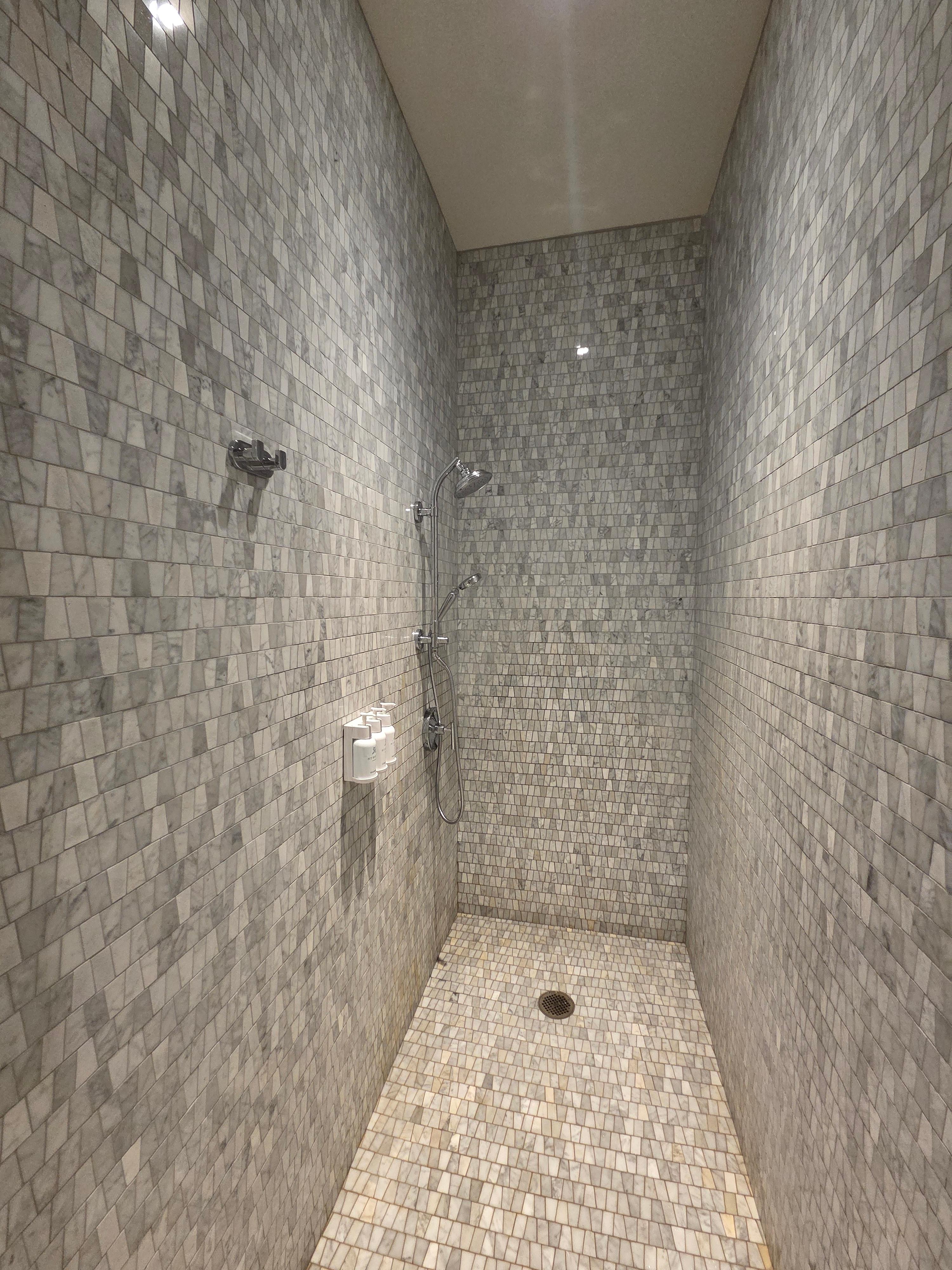 세인트 레지스 시카고 디럭스 리버뷰 객실 내부 샤워부스(좌), 변기(우)