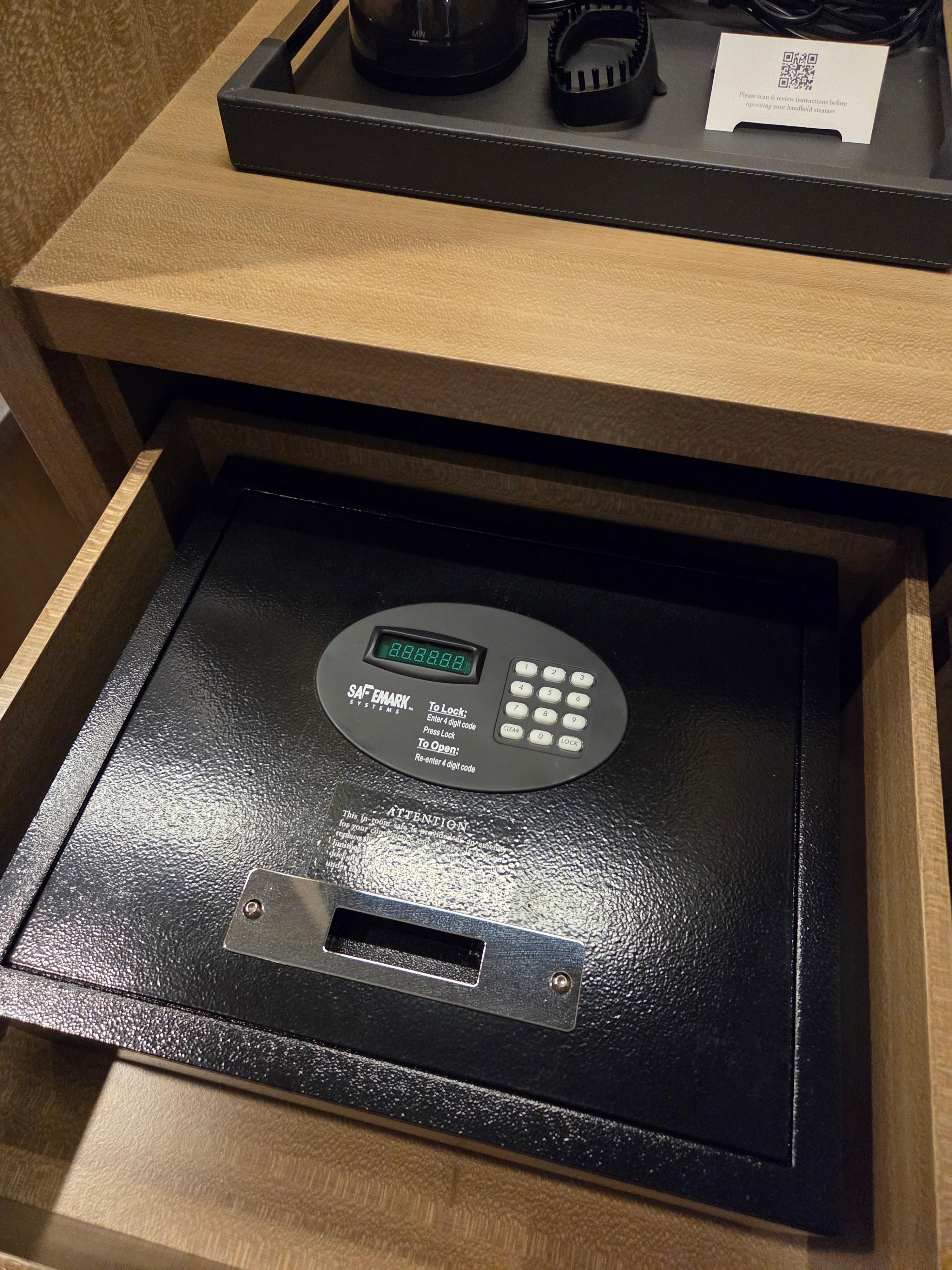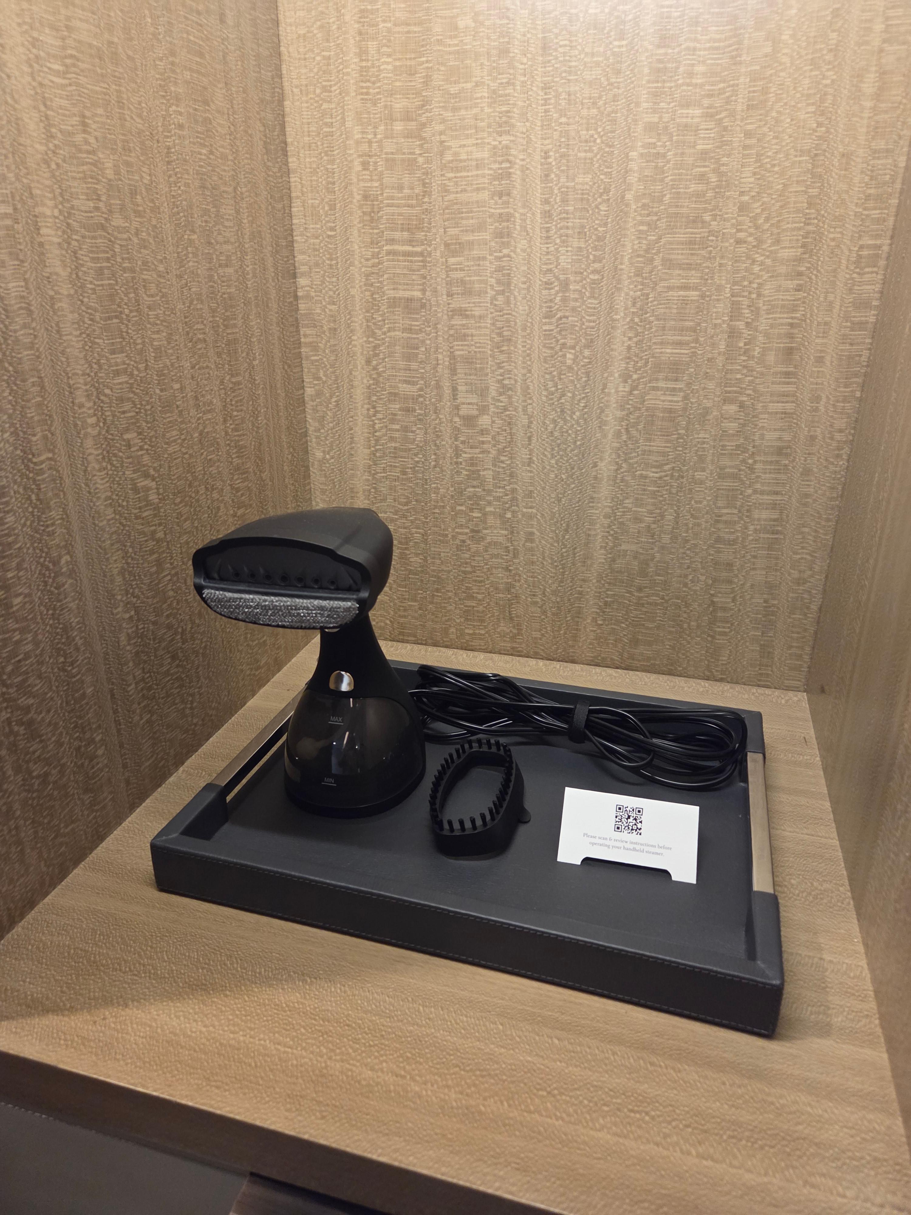 세인트 레지스 시카고 디럭스 리버뷰 객실 룸 어매니티 3 객실 어매니티로는 슬리퍼와 배스로브, 금고, 슈미트와 브러시 등이 제공되었고, 다리미 대신에 스팀다리미가 비치되어 있었습니다. 원래 대부분의 세인트 레지스 호텔에서는 하루에 2장씩 무료 다림질 서비스를 제공하는데 세인트 레지스 시카고에는 이와 관련된 안내는 따로 없었습니다.