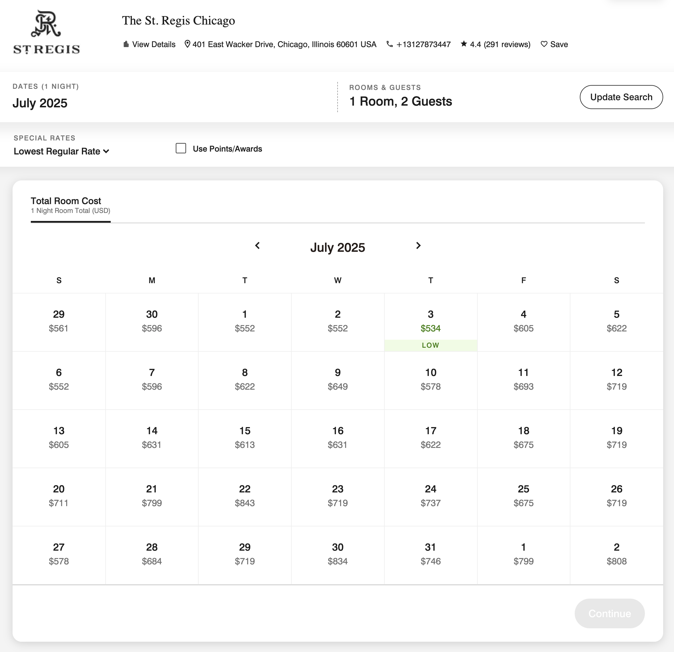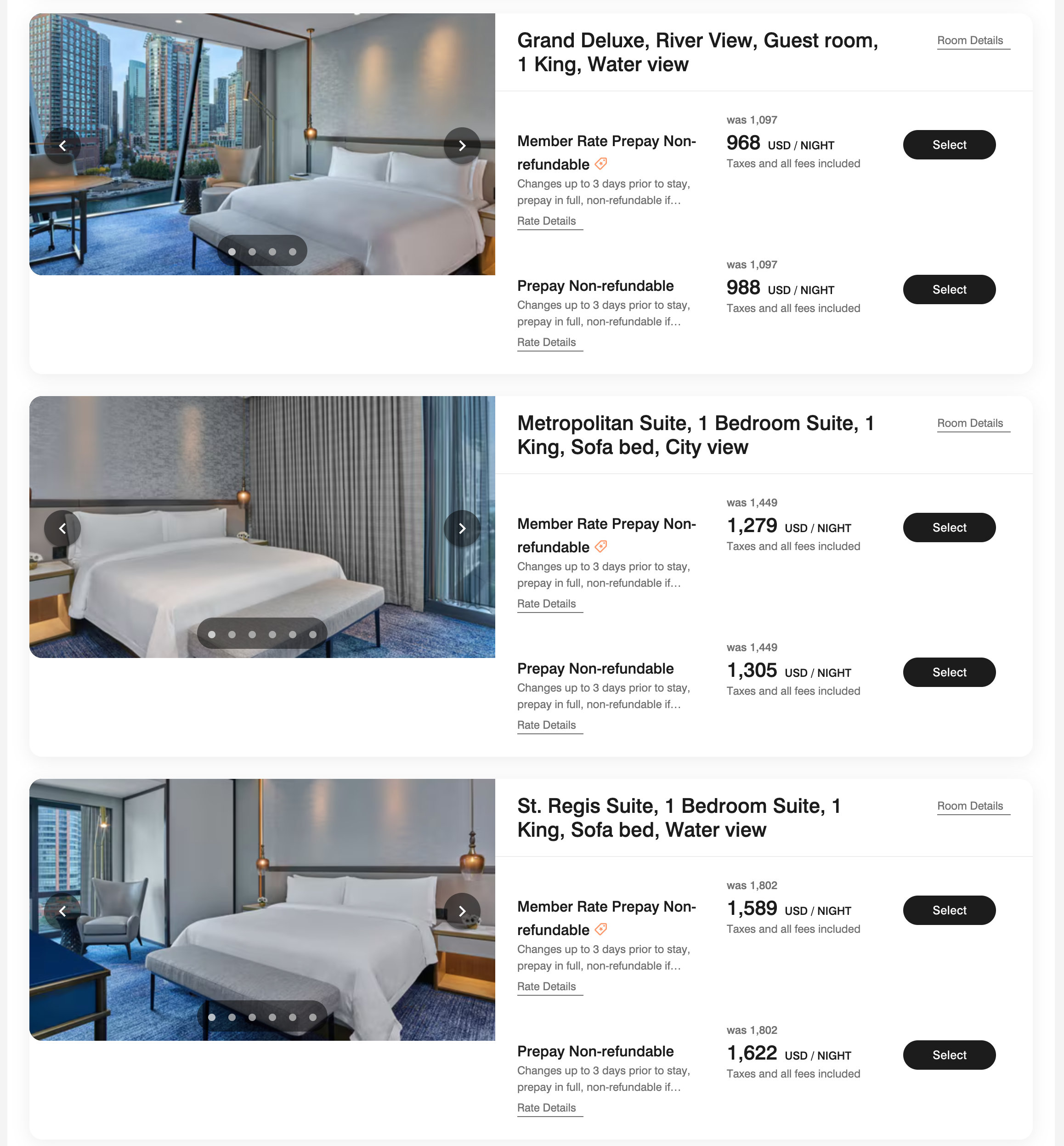세인트 레지스 시카고 룸 레이트