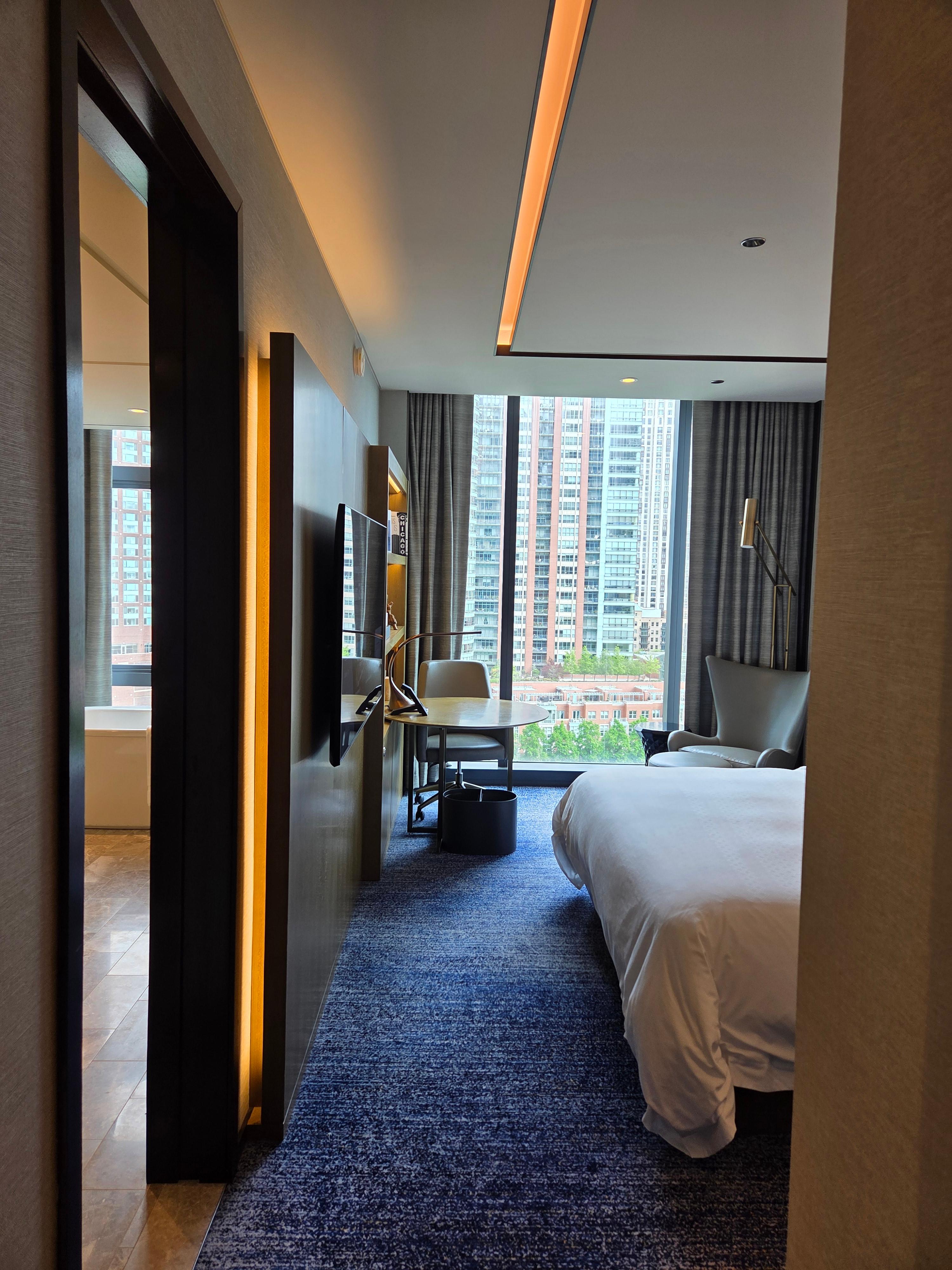 저는 아침 8시 30분에 시카고 오헤어 공항에 도착을 했고, 우버를 타고 이동하니 10시 전에 호텔에 도착했습니다. 오전 9시 30분이라는 이른 시간이었지만 다행히도 따로 짐을 맡기거나 할 필요 없이 바로 체크인을 할 수 있었고, 업그레이드 된 방도 준비가 되어 있어 바로 객실로 이동할 수 있었습니다. 오전 9시 30분에 체크인을 해서 다음날 오후 4시에 체크아웃을 했으니 대략 30시간이 넘는 시간 동안 방을 이용할 수 있어서 이점은 너무 편리했습니다. 다만, 때에 따라 기본방도 체크인 시간 전에 준비가 되어있지 않은 경우도 있다는 이야기도 있어서 이 부분은 당일 호텔 객실 점유 상황에 따라 달라질 것 같습니다.
