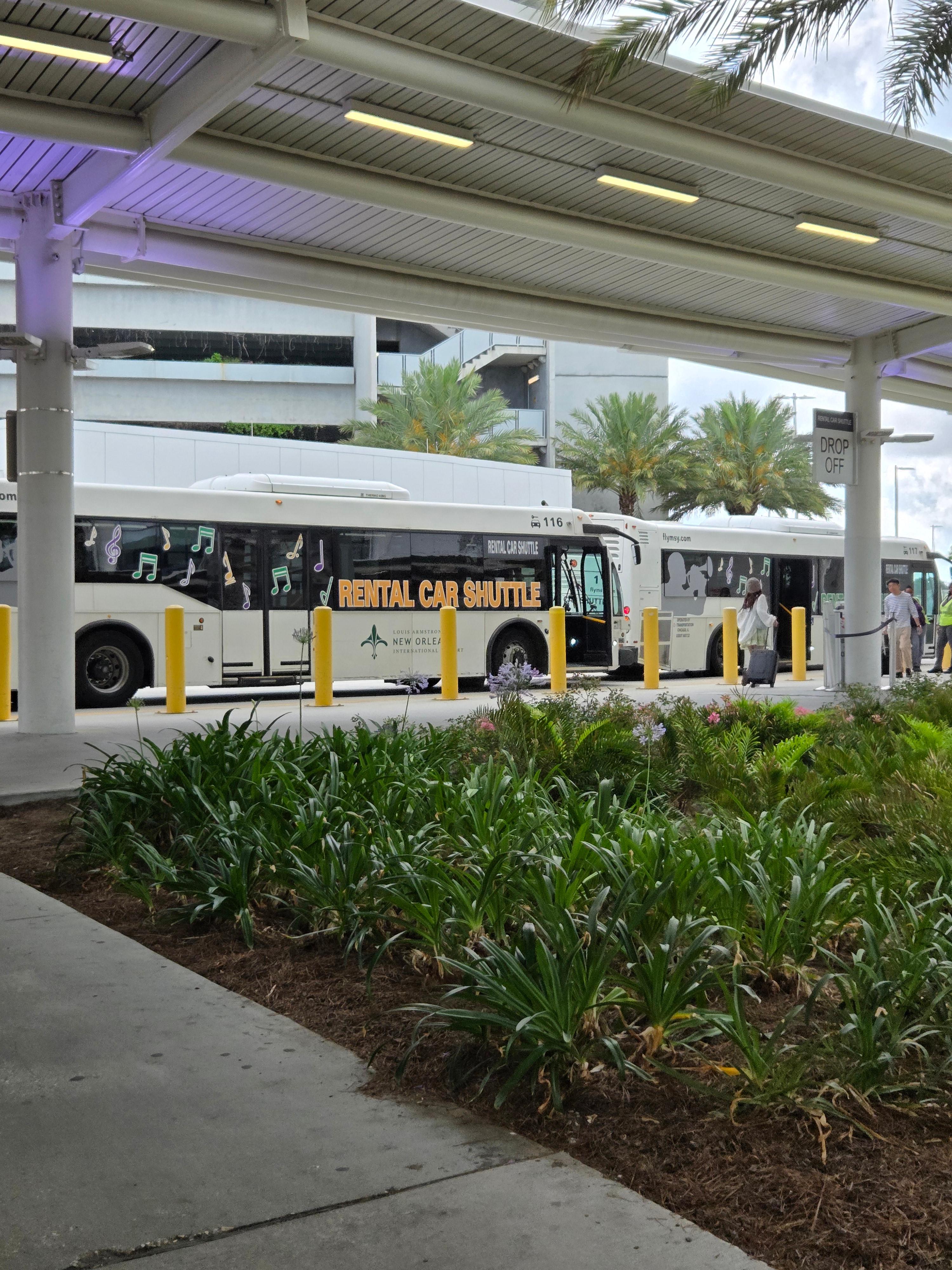 뉴올리언스 공항 렌터카 셔틀 DL4016편과 DL3970편 모두 지연 없이 예정대로 공항에 도착했습니다. 뉴올리언스 공항의 경우 공항에서 202번 버스를 이용해 다운타운으로 한번에 이동할 수 있습니다. 소요시간은 약 45분 정도입니다. 다만, 202번 버스의 경우 배차간격이 1시간이 넘기에 출발 시간을 잘 확인하시고 이용하시는 게 좋을 것 같습니다. 저의 경우는 렌터카를 이용했는데요, 지난 2019년에 뉴올리언스 공항 청사를 신축 청사로 옮기면서 뉴올리언스 공항의 구 공항 청사에 위치했던 렌터카센터와 거리가 멀어졌습니다. 따라서 도보로 이동하는 건 불가능해졌고, 렌터카 셔틀을 이용하셔야 합니다. 렌터카 셔틀은 주기적으로 출발하며 이동시간은 약 15~20분 정도 걸립니다. 따라서 렌터카 대여 시간과 반납 시간을 설정하실 때 이동시간을 참고하시면 좋을 것 같습니다.