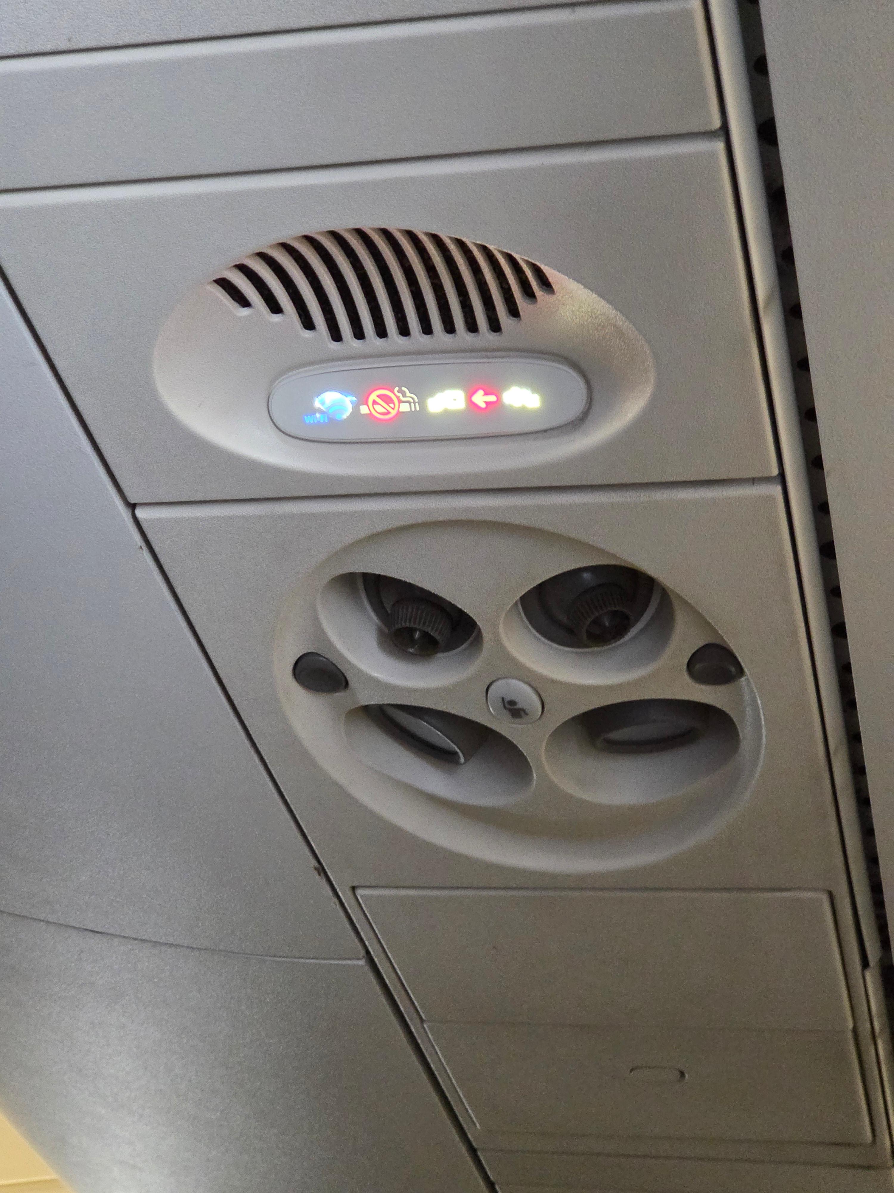 델타항공 ERJ-175 좌석 테이블과 공조장치